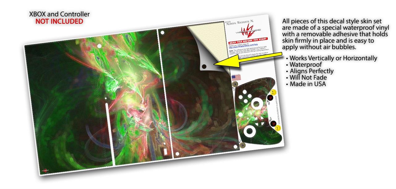 WraptorSkinz® skin wraps for the XBOX Series X gaming console and controller reelase November 2020 are printed using superb photo quality designs and vibrant colors printed with special fade resistant inks that last even in direct sun for years. WraptorSkinz are a composite of two layers of commercial grade materials. The bottom layer is a soft, flexible vinyl with a special removable adhesive that is easily positioned, applied without air bubbles. Next we print the bottom layer with UV protected, fade resistant inks that deliver superb photo quality designs in vibrant colors. Last, we bond a professional grade laminate over the entire skin adding a glossy protective finish. This product is not affiliated with or endorsed by Microsoft or the XBOX brand.