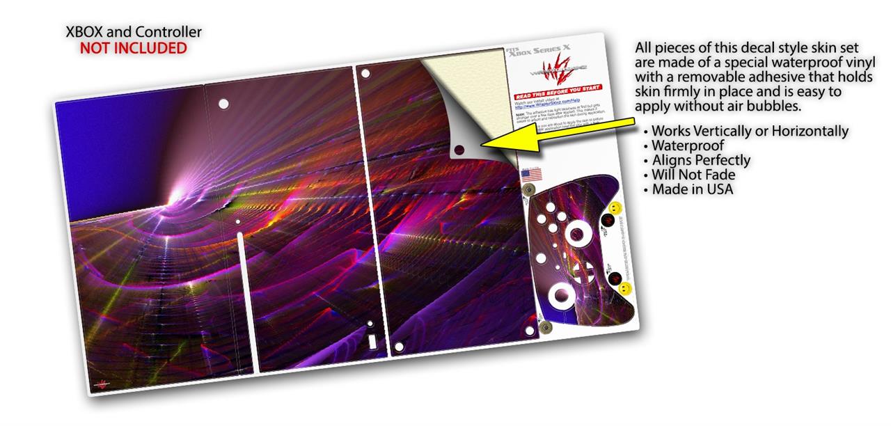 WraptorSkinz® skin wraps for the XBOX Series X gaming console and controller reelase November 2020 are printed using superb photo quality designs and vibrant colors printed with special fade resistant inks that last even in direct sun for years. WraptorSkinz are a composite of two layers of commercial grade materials. The bottom layer is a soft, flexible vinyl with a special removable adhesive that is easily positioned, applied without air bubbles. Next we print the bottom layer with UV protected, fade resistant inks that deliver superb photo quality designs in vibrant colors. Last, we bond a professional grade laminate over the entire skin adding a glossy protective finish. This product is not affiliated with or endorsed by Microsoft or the XBOX brand.