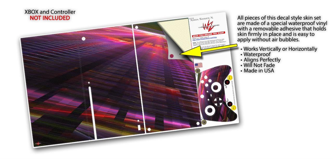 WraptorSkinz® skin wraps for the XBOX Series X gaming console and controller reelase November 2020 are printed using superb photo quality designs and vibrant colors printed with special fade resistant inks that last even in direct sun for years. WraptorSkinz are a composite of two layers of commercial grade materials. The bottom layer is a soft, flexible vinyl with a special removable adhesive that is easily positioned, applied without air bubbles. Next we print the bottom layer with UV protected, fade resistant inks that deliver superb photo quality designs in vibrant colors. Last, we bond a professional grade laminate over the entire skin adding a glossy protective finish. This product is not affiliated with or endorsed by Microsoft or the XBOX brand.