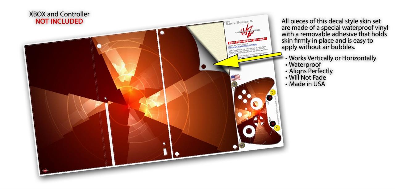 WraptorSkinz® skin wraps for the XBOX Series X gaming console and controller reelase November 2020 are printed using superb photo quality designs and vibrant colors printed with special fade resistant inks that last even in direct sun for years. WraptorSkinz are a composite of two layers of commercial grade materials. The bottom layer is a soft, flexible vinyl with a special removable adhesive that is easily positioned, applied without air bubbles. Next we print the bottom layer with UV protected, fade resistant inks that deliver superb photo quality designs in vibrant colors. Last, we bond a professional grade laminate over the entire skin adding a glossy protective finish. This product is not affiliated with or endorsed by Microsoft or the XBOX brand.