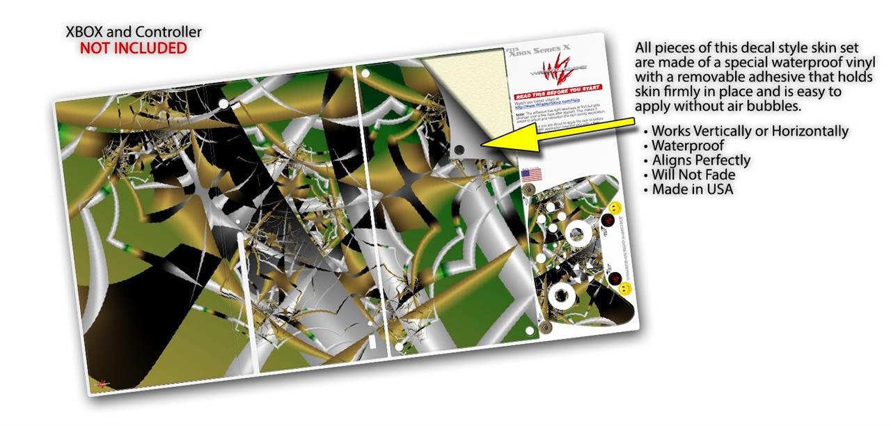 WraptorSkinz® skin wraps for the XBOX Series X gaming console and controller reelase November 2020 are printed using superb photo quality designs and vibrant colors printed with special fade resistant inks that last even in direct sun for years. WraptorSkinz are a composite of two layers of commercial grade materials. The bottom layer is a soft, flexible vinyl with a special removable adhesive that is easily positioned, applied without air bubbles. Next we print the bottom layer with UV protected, fade resistant inks that deliver superb photo quality designs in vibrant colors. Last, we bond a professional grade laminate over the entire skin adding a glossy protective finish. This product is not affiliated with or endorsed by Microsoft or the XBOX brand.
