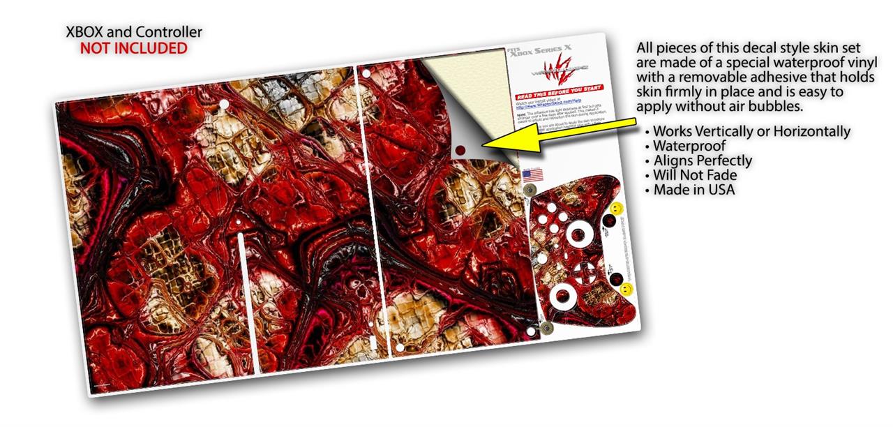 WraptorSkinz® skin wraps for the XBOX Series X gaming console and controller reelase November 2020 are printed using superb photo quality designs and vibrant colors printed with special fade resistant inks that last even in direct sun for years. WraptorSkinz are a composite of two layers of commercial grade materials. The bottom layer is a soft, flexible vinyl with a special removable adhesive that is easily positioned, applied without air bubbles. Next we print the bottom layer with UV protected, fade resistant inks that deliver superb photo quality designs in vibrant colors. Last, we bond a professional grade laminate over the entire skin adding a glossy protective finish. This product is not affiliated with or endorsed by Microsoft or the XBOX brand.
