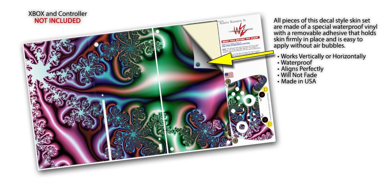 WraptorSkinz® skin wraps for the XBOX Series X gaming console and controller reelase November 2020 are printed using superb photo quality designs and vibrant colors printed with special fade resistant inks that last even in direct sun for years. WraptorSkinz are a composite of two layers of commercial grade materials. The bottom layer is a soft, flexible vinyl with a special removable adhesive that is easily positioned, applied without air bubbles. Next we print the bottom layer with UV protected, fade resistant inks that deliver superb photo quality designs in vibrant colors. Last, we bond a professional grade laminate over the entire skin adding a glossy protective finish. This product is not affiliated with or endorsed by Microsoft or the XBOX brand.