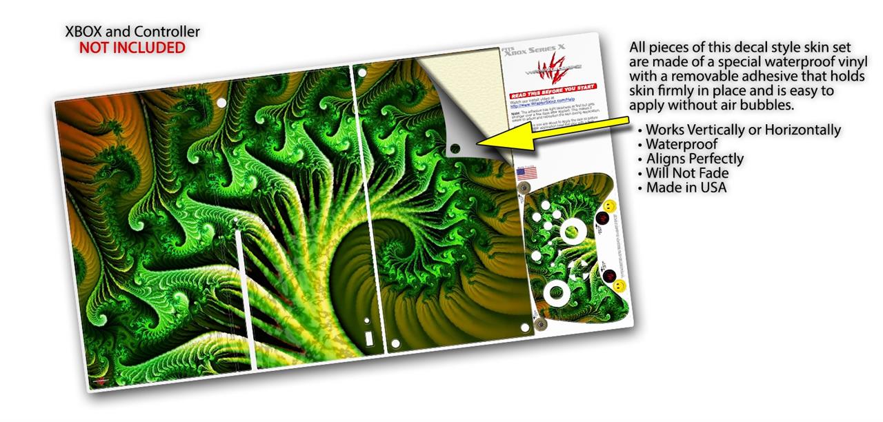 WraptorSkinz® skin wraps for the XBOX Series X gaming console and controller reelase November 2020 are printed using superb photo quality designs and vibrant colors printed with special fade resistant inks that last even in direct sun for years. WraptorSkinz are a composite of two layers of commercial grade materials. The bottom layer is a soft, flexible vinyl with a special removable adhesive that is easily positioned, applied without air bubbles. Next we print the bottom layer with UV protected, fade resistant inks that deliver superb photo quality designs in vibrant colors. Last, we bond a professional grade laminate over the entire skin adding a glossy protective finish. This product is not affiliated with or endorsed by Microsoft or the XBOX brand.