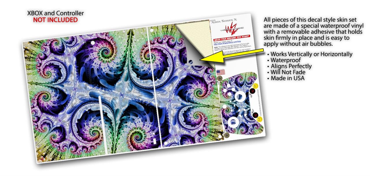 WraptorSkinz® skin wraps for the XBOX Series X gaming console and controller reelase November 2020 are printed using superb photo quality designs and vibrant colors printed with special fade resistant inks that last even in direct sun for years. WraptorSkinz are a composite of two layers of commercial grade materials. The bottom layer is a soft, flexible vinyl with a special removable adhesive that is easily positioned, applied without air bubbles. Next we print the bottom layer with UV protected, fade resistant inks that deliver superb photo quality designs in vibrant colors. Last, we bond a professional grade laminate over the entire skin adding a glossy protective finish. This product is not affiliated with or endorsed by Microsoft or the XBOX brand.