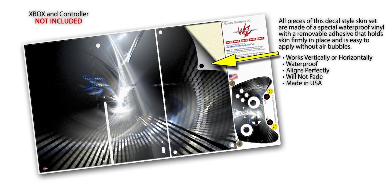 WraptorSkinz® skin wraps for the XBOX Series X gaming console and controller reelase November 2020 are printed using superb photo quality designs and vibrant colors printed with special fade resistant inks that last even in direct sun for years. WraptorSkinz are a composite of two layers of commercial grade materials. The bottom layer is a soft, flexible vinyl with a special removable adhesive that is easily positioned, applied without air bubbles. Next we print the bottom layer with UV protected, fade resistant inks that deliver superb photo quality designs in vibrant colors. Last, we bond a professional grade laminate over the entire skin adding a glossy protective finish. This product is not affiliated with or endorsed by Microsoft or the XBOX brand.