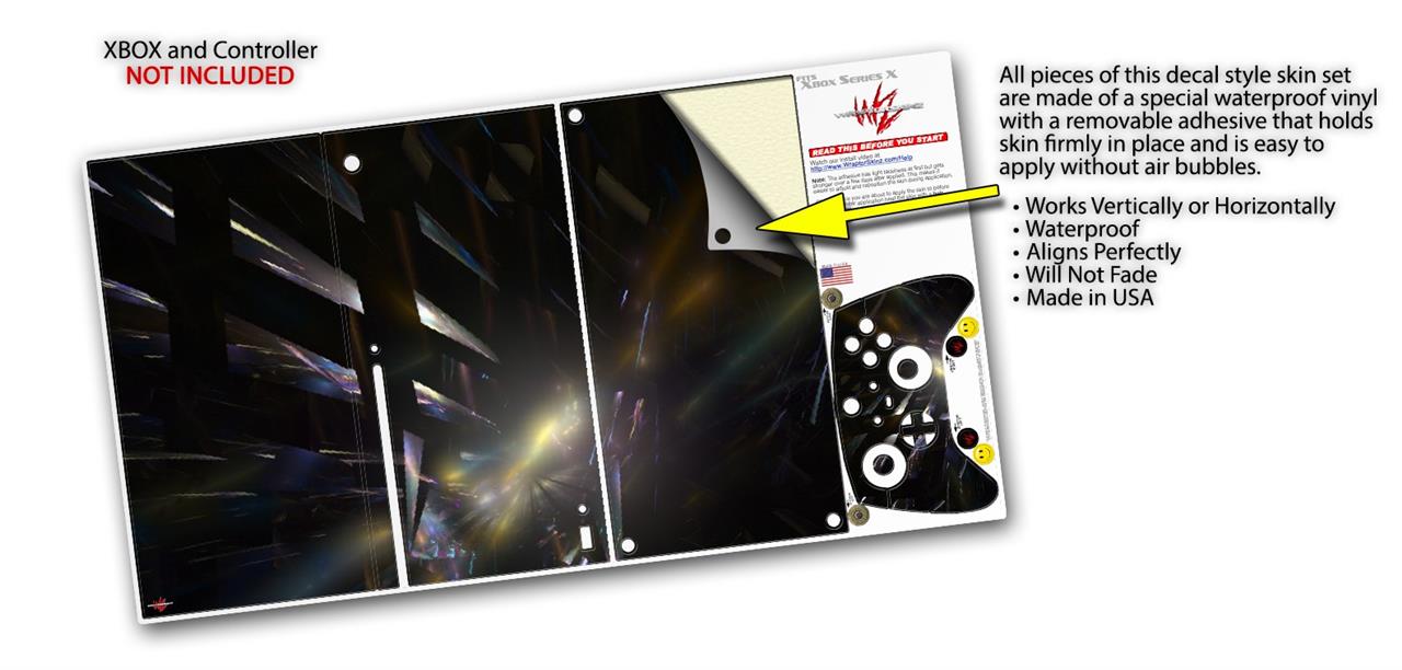 WraptorSkinz® skin wraps for the XBOX Series X gaming console and controller reelase November 2020 are printed using superb photo quality designs and vibrant colors printed with special fade resistant inks that last even in direct sun for years. WraptorSkinz are a composite of two layers of commercial grade materials. The bottom layer is a soft, flexible vinyl with a special removable adhesive that is easily positioned, applied without air bubbles. Next we print the bottom layer with UV protected, fade resistant inks that deliver superb photo quality designs in vibrant colors. Last, we bond a professional grade laminate over the entire skin adding a glossy protective finish. This product is not affiliated with or endorsed by Microsoft or the XBOX brand.