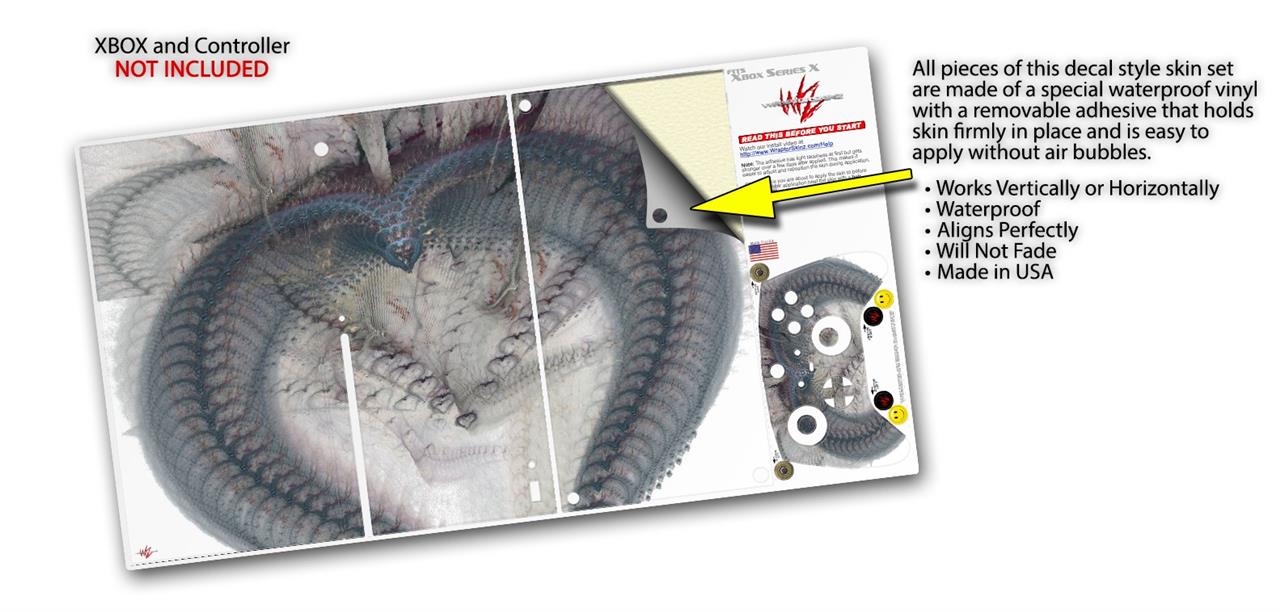 WraptorSkinz® skin wraps for the XBOX Series X gaming console and controller reelase November 2020 are printed using superb photo quality designs and vibrant colors printed with special fade resistant inks that last even in direct sun for years. WraptorSkinz are a composite of two layers of commercial grade materials. The bottom layer is a soft, flexible vinyl with a special removable adhesive that is easily positioned, applied without air bubbles. Next we print the bottom layer with UV protected, fade resistant inks that deliver superb photo quality designs in vibrant colors. Last, we bond a professional grade laminate over the entire skin adding a glossy protective finish. This product is not affiliated with or endorsed by Microsoft or the XBOX brand.