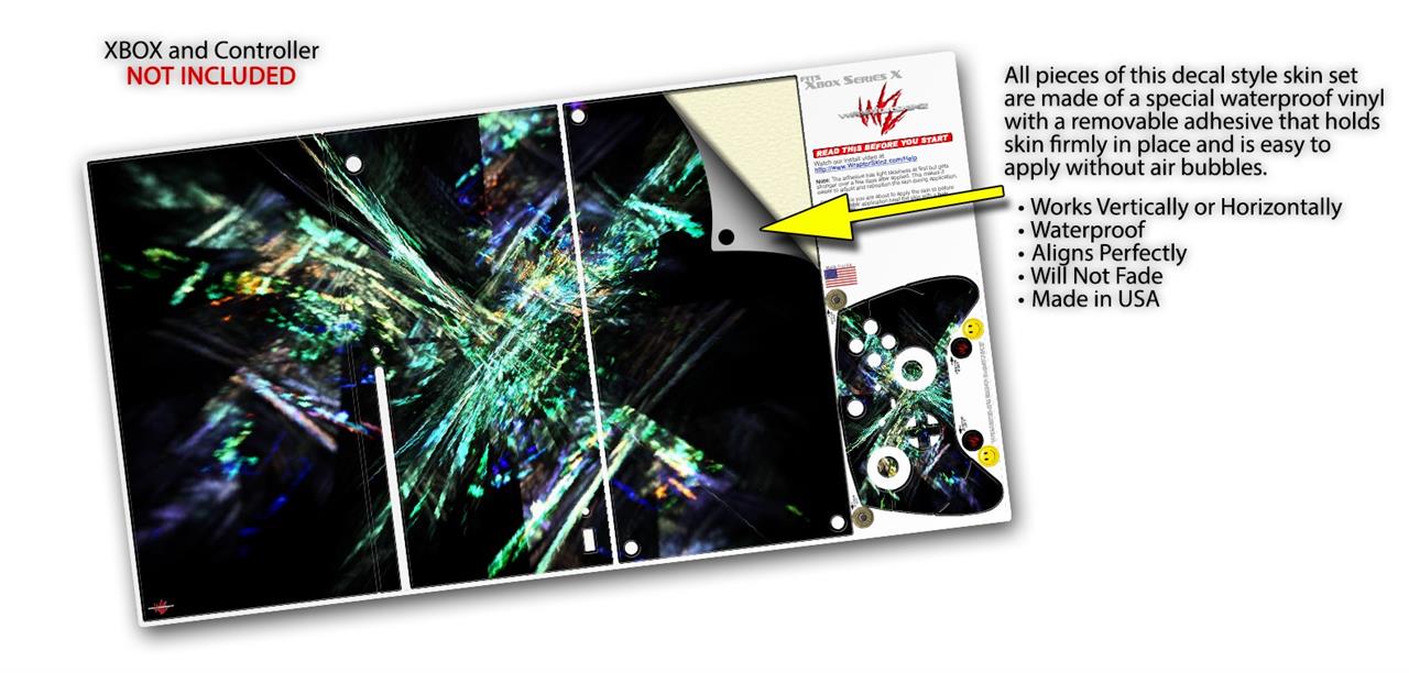 WraptorSkinz® skin wraps for the XBOX Series X gaming console and controller reelase November 2020 are printed using superb photo quality designs and vibrant colors printed with special fade resistant inks that last even in direct sun for years. WraptorSkinz are a composite of two layers of commercial grade materials. The bottom layer is a soft, flexible vinyl with a special removable adhesive that is easily positioned, applied without air bubbles. Next we print the bottom layer with UV protected, fade resistant inks that deliver superb photo quality designs in vibrant colors. Last, we bond a professional grade laminate over the entire skin adding a glossy protective finish. This product is not affiliated with or endorsed by Microsoft or the XBOX brand.