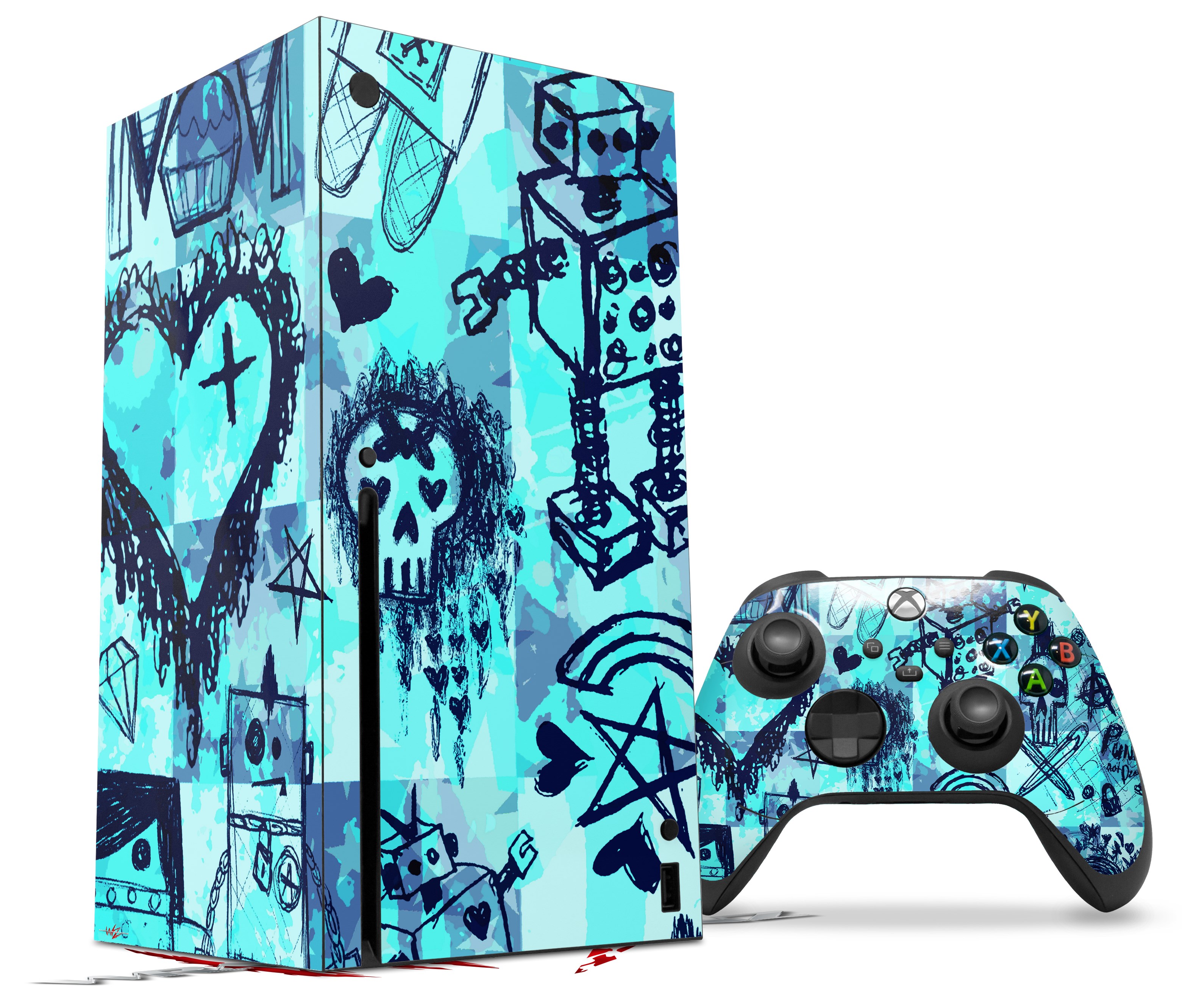 WraptorSkinz Skin Wrap compatible with the 2020 XBOX Series X Console and Controller Scene Kid Sketches Blue (XBOX NOT INCLUDED)