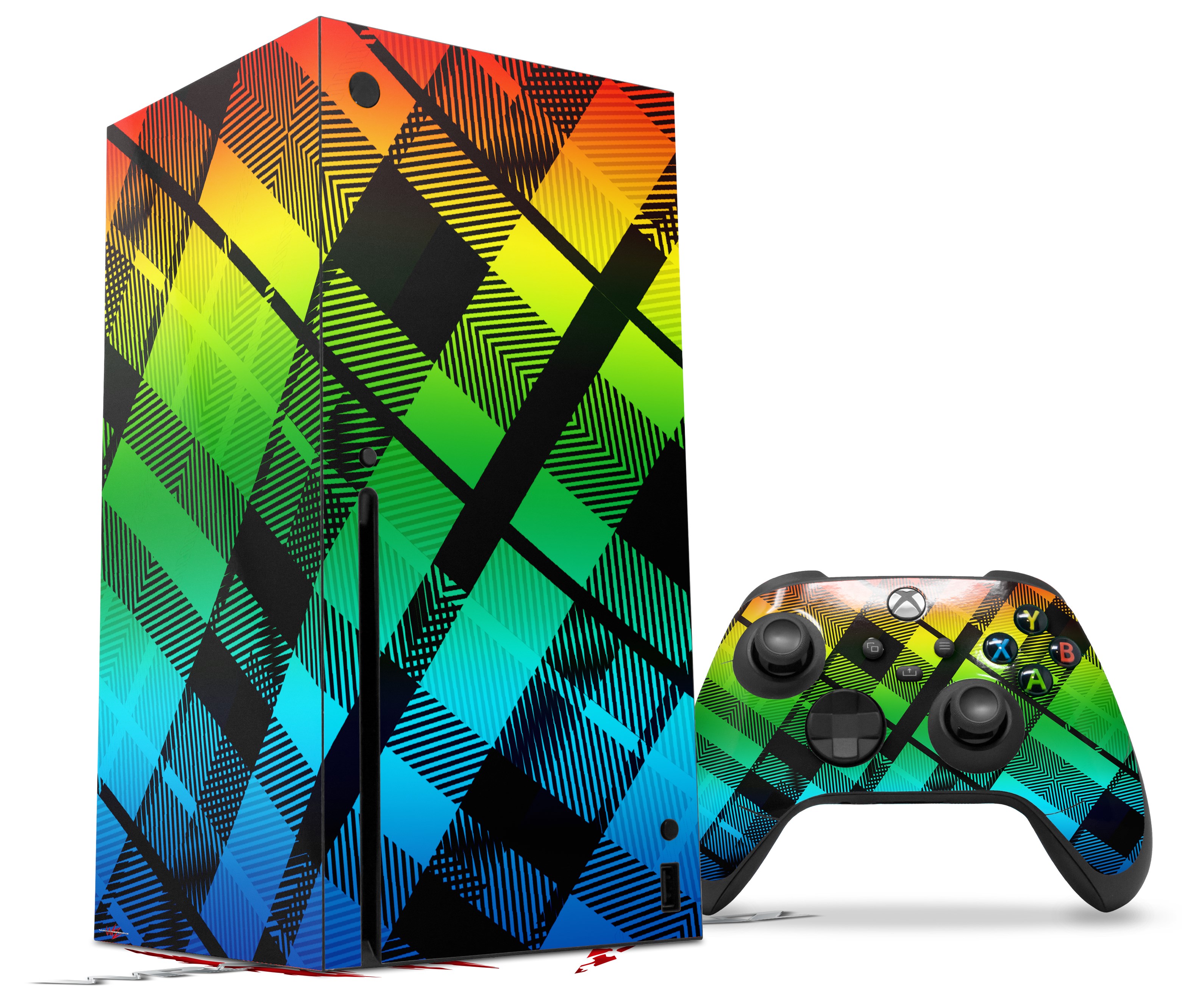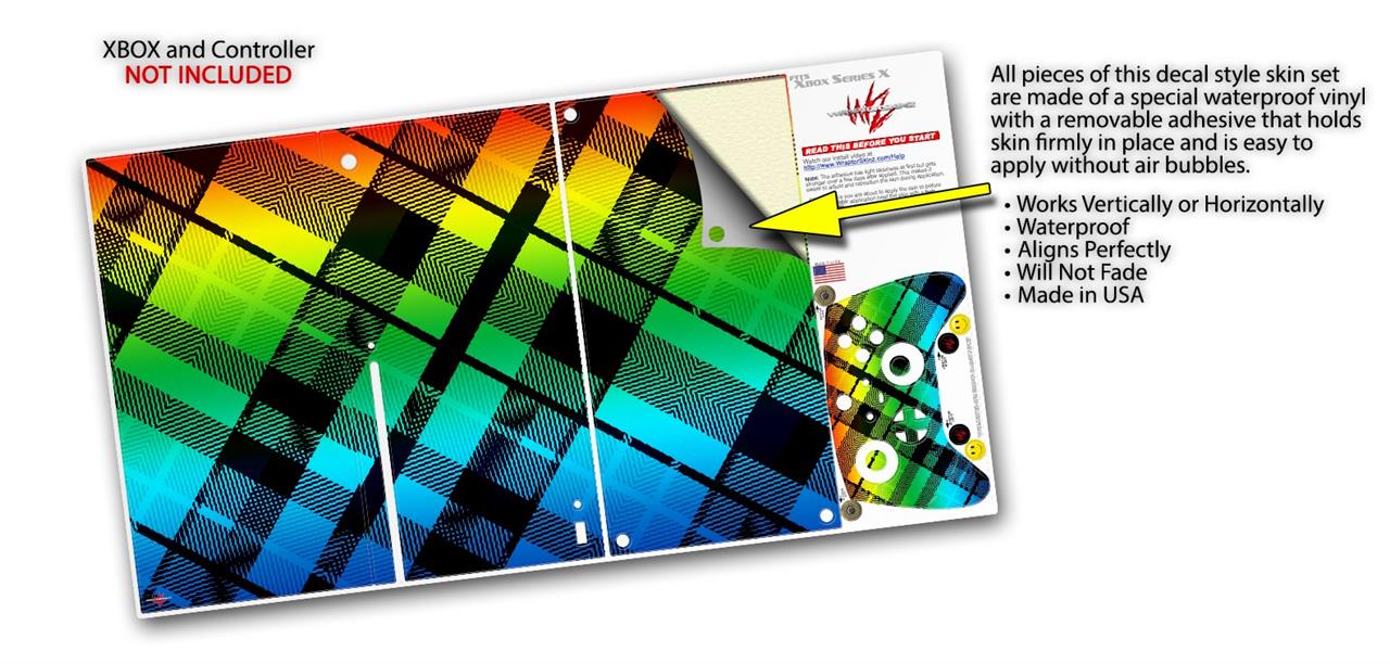 WraptorSkinz Skin Wrap compatible with the 2020 XBOX Series X Console and Controller Rainbow Plaid (XBOX NOT INCLUDED)