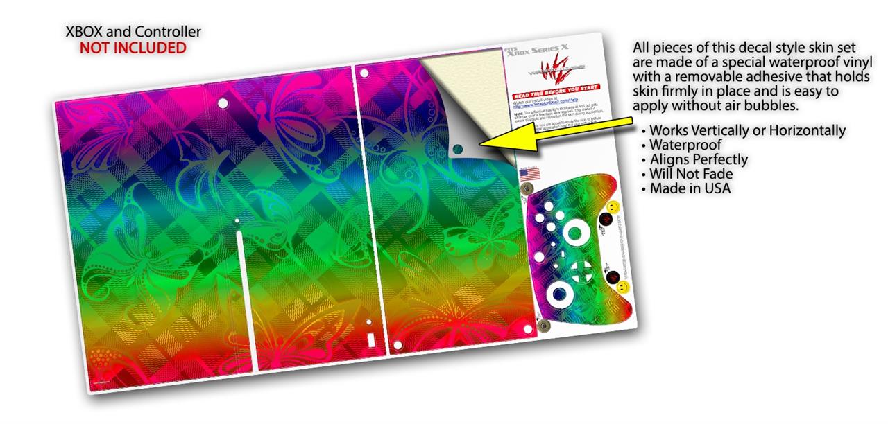 WraptorSkinz Skin Wrap compatible with the 2020 XBOX Series X Console and Controller Rainbow Butterflies (XBOX NOT INCLUDED)