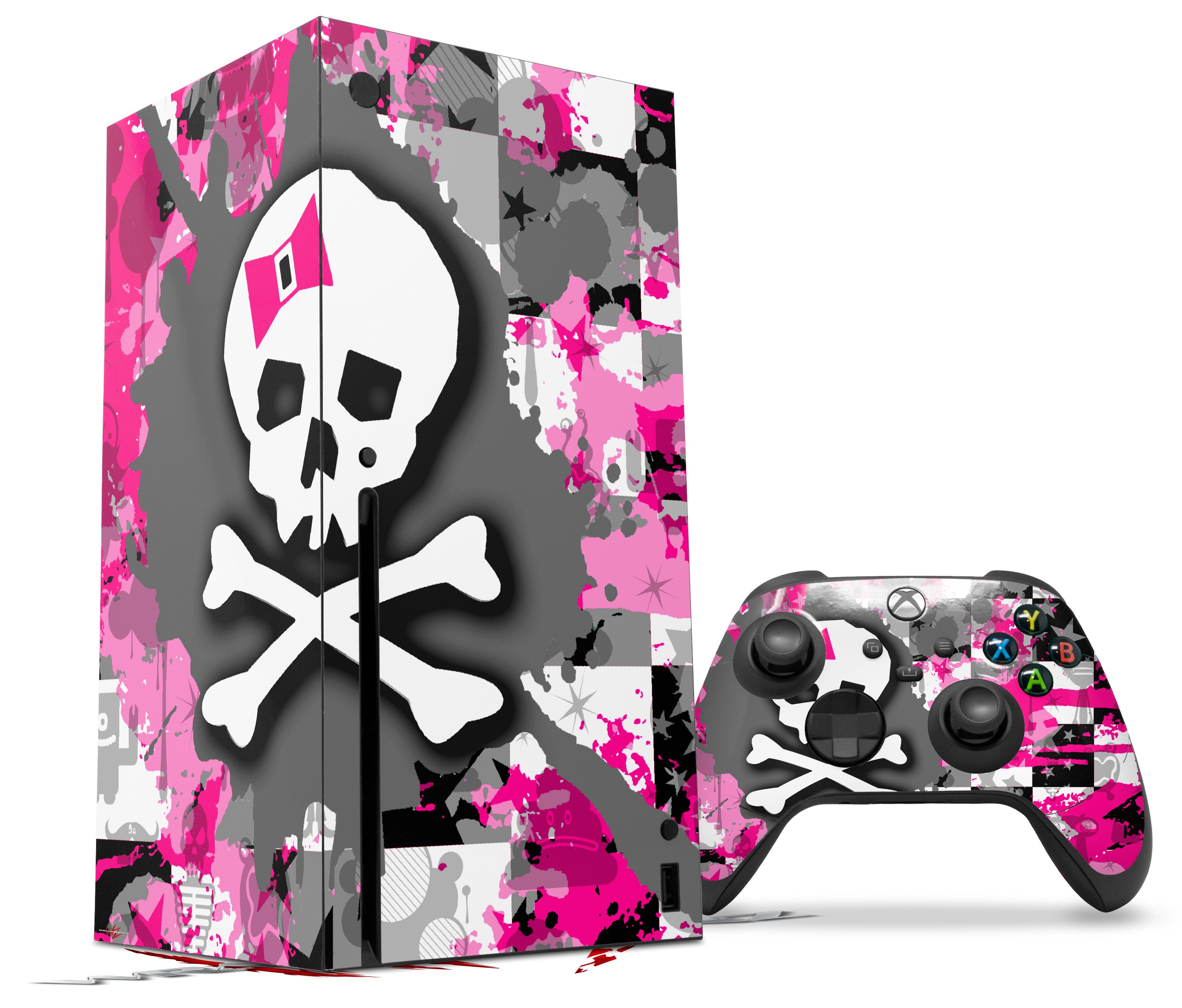 WraptorSkinz Skin Wrap compatible with the 2020 XBOX Series X Console and Controller Girly Pink Bow Skull (XBOX NOT INCLUDED)