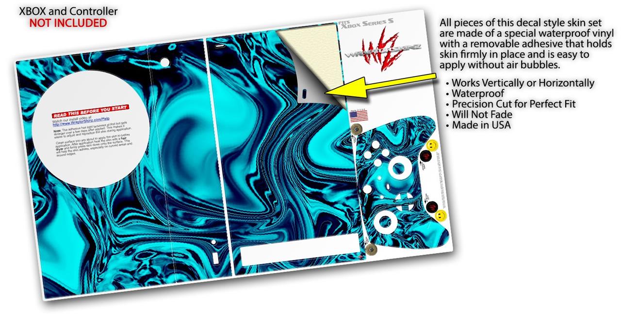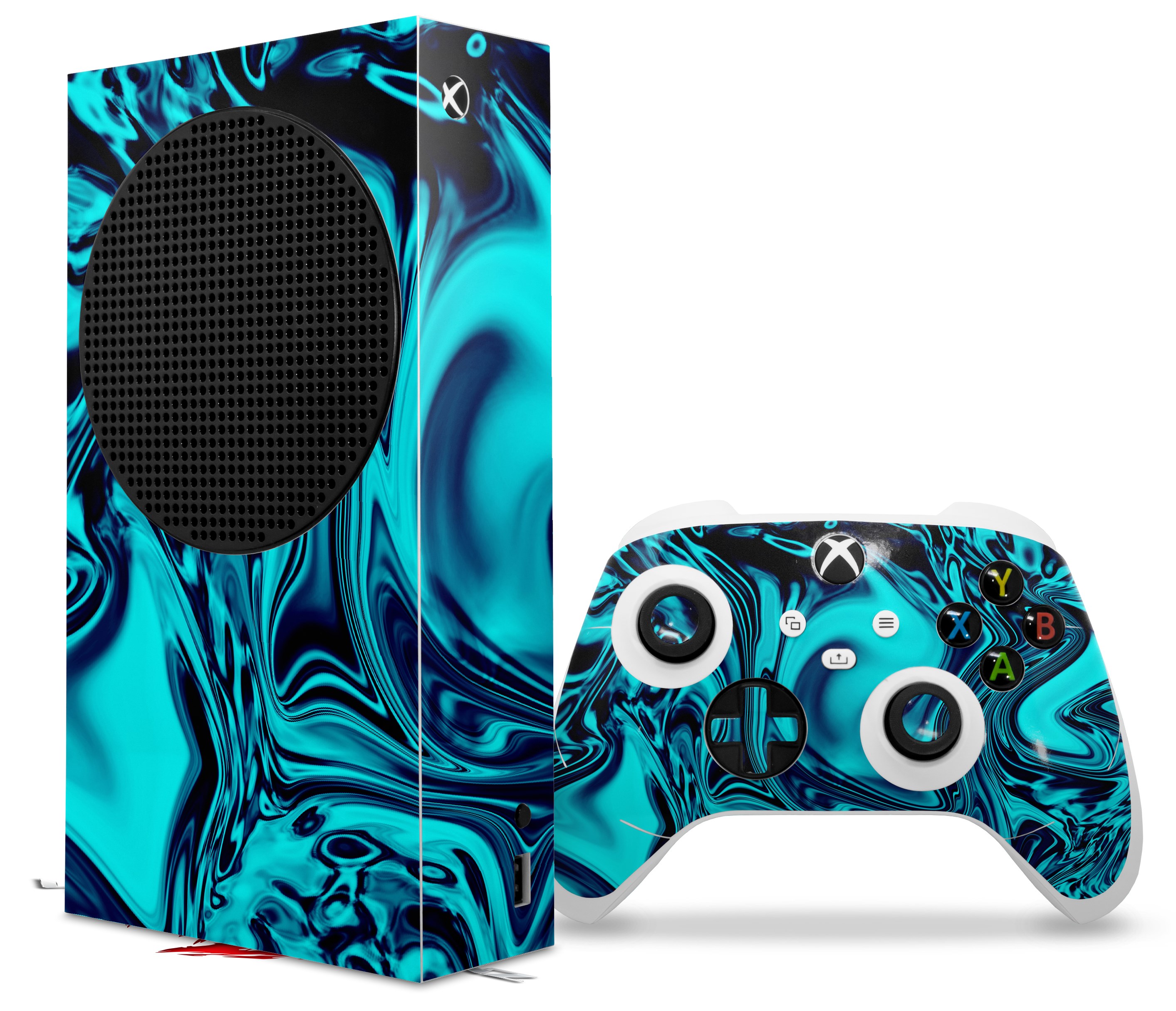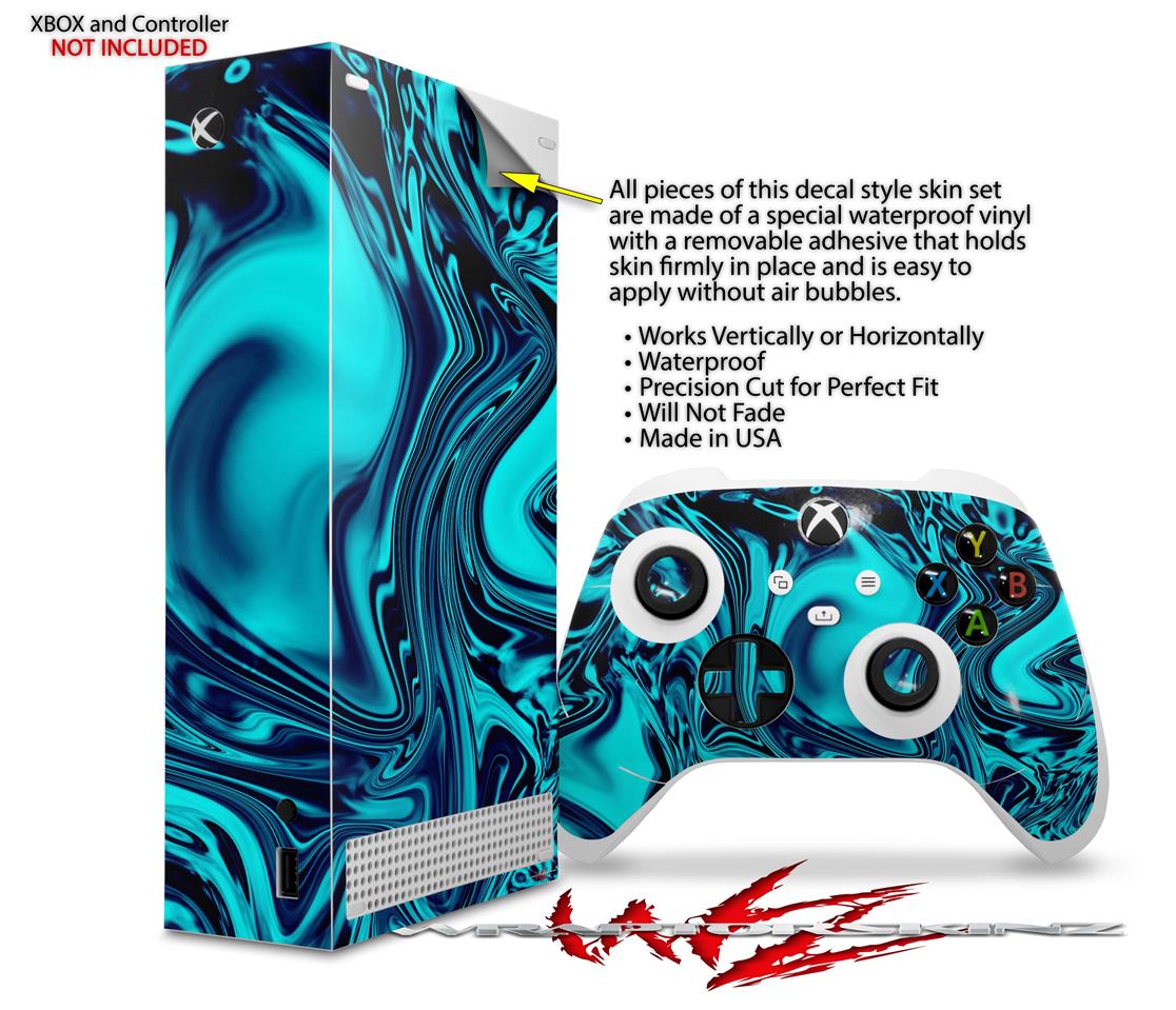 WraptorSkinz Skin Wrap compatible with the 2020 XBOX Series S Console and Controller Liquid Metal Chrome Neon Blue (XBOX NOT INCLUDED)