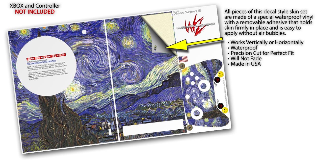 WraptorSkinz Skin Wrap compatible with the 2020 XBOX Series S Console and Controller Vincent Van Gogh Starry Night (XBOX NOT INCLUDED)