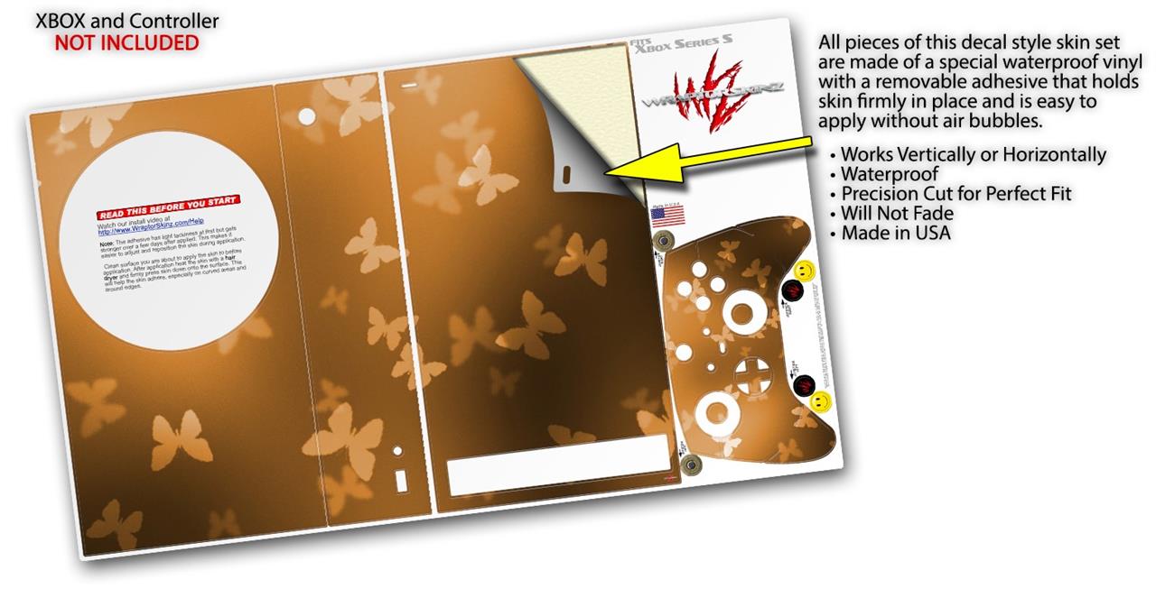 WraptorSkinz Skin Wrap compatible with the 2020 XBOX Series S Console and Controller Bokeh Butterflies Orange (XBOX NOT INCLUDED)