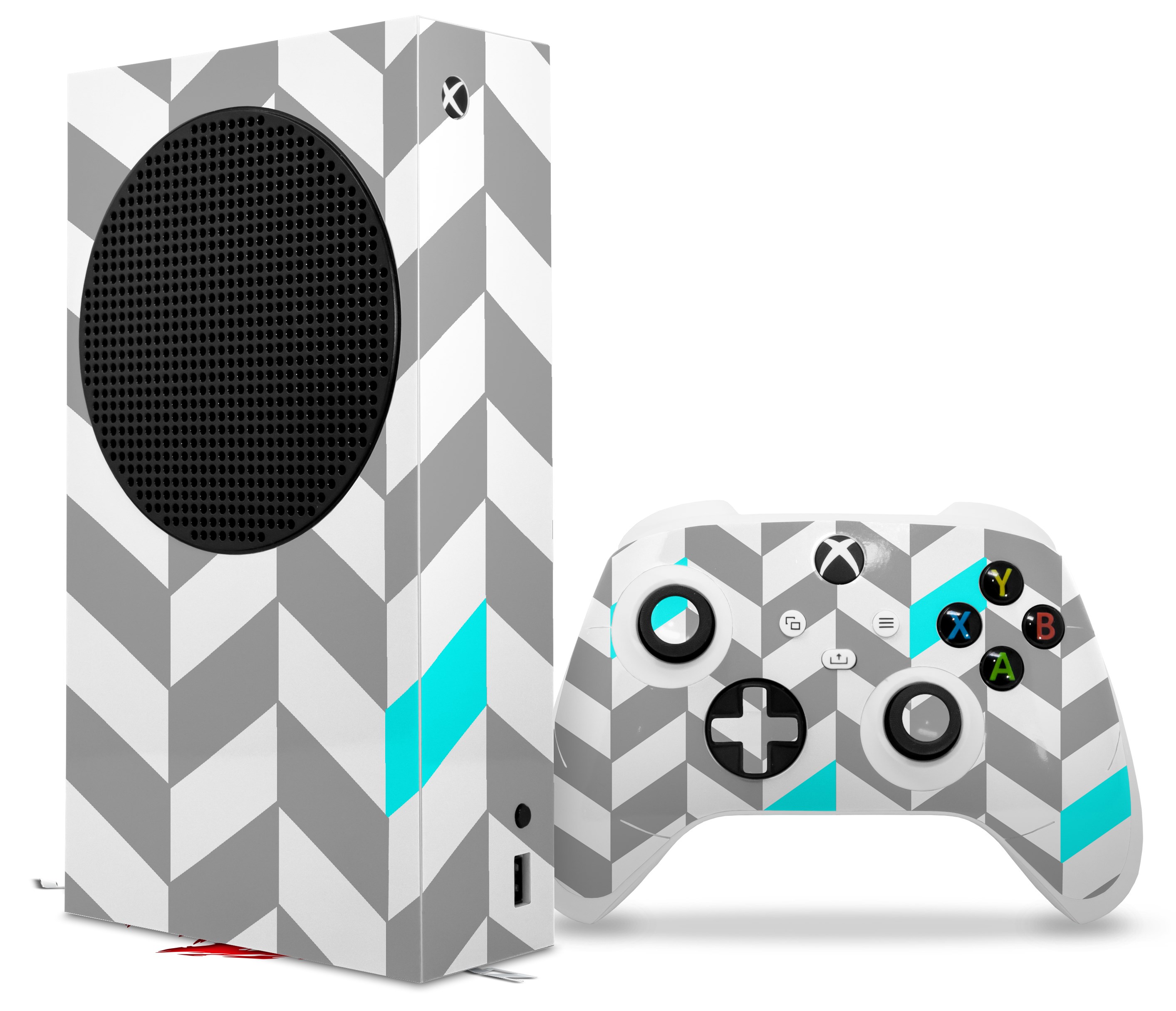 WraptorSkinz Skin Wrap compatible with the 2020 XBOX Series S Console and Controller Chevrons Gray And Aqua (XBOX NOT INCLUDED)