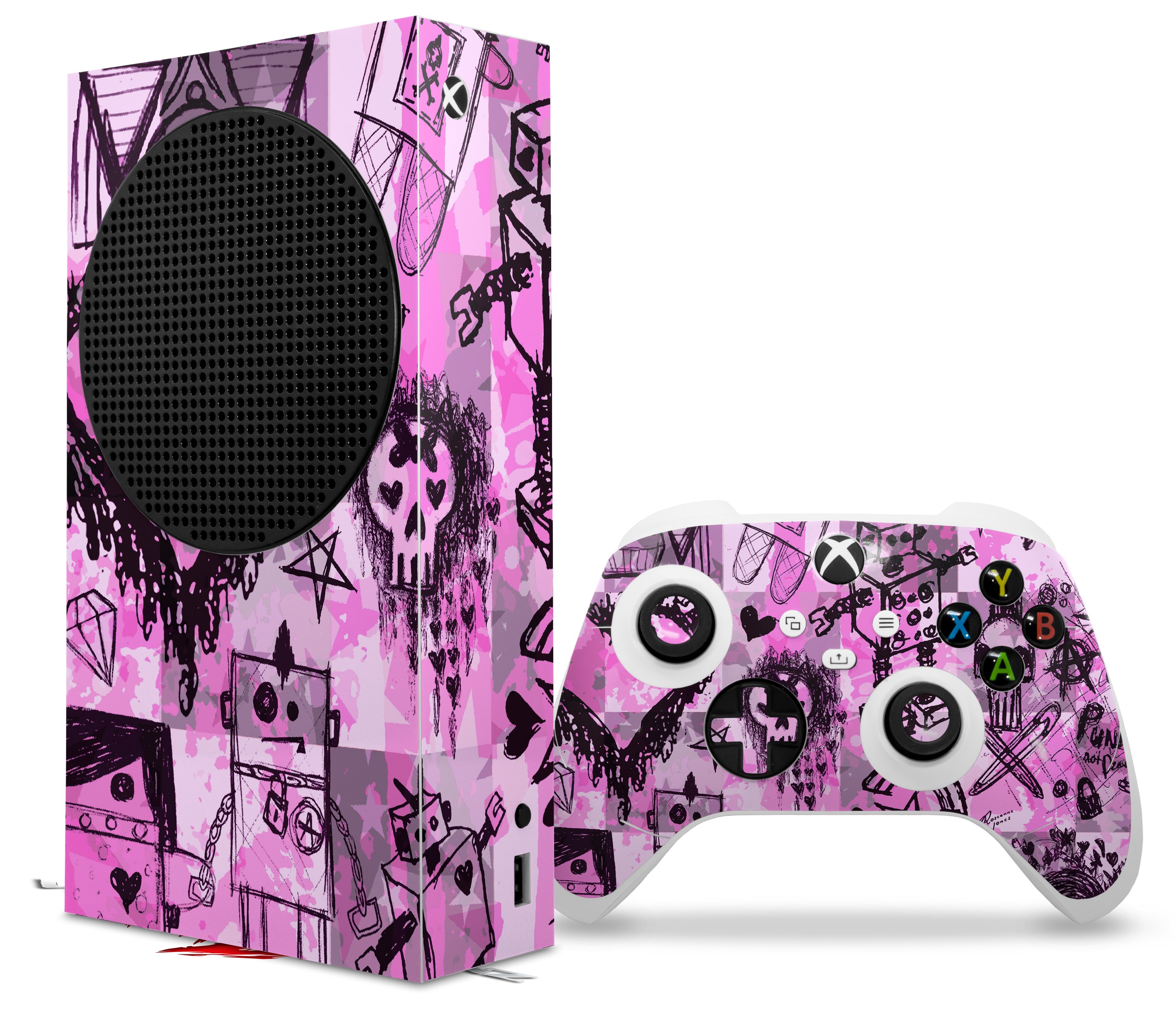 WraptorSkinz Skin Wrap compatible with the 2020 XBOX Series S Console and Controller Scene Kid Sketches Pink (XBOX NOT INCLUDED)