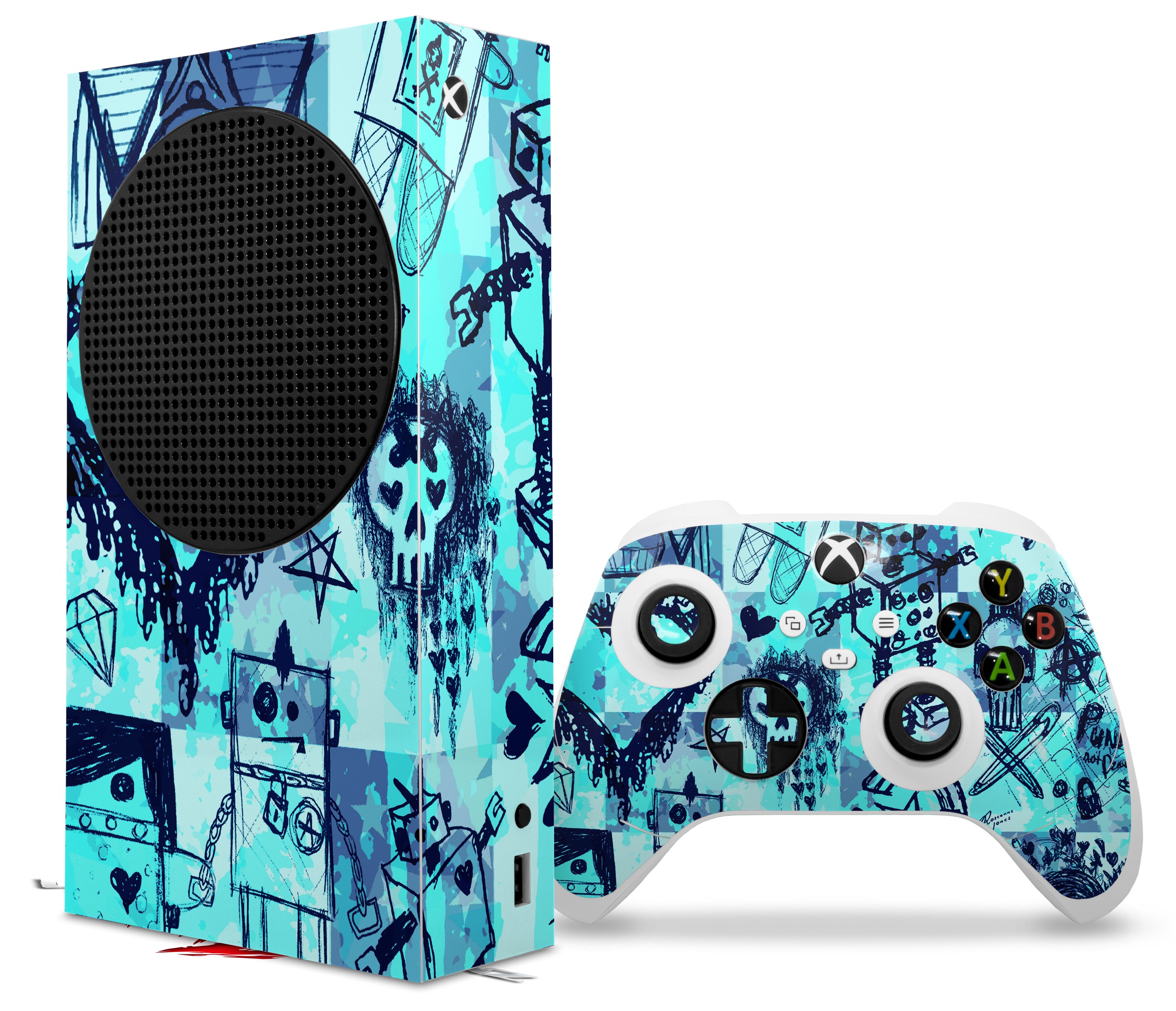 WraptorSkinz Skin Wrap compatible with the 2020 XBOX Series S Console and Controller Scene Kid Sketches Blue (XBOX NOT INCLUDED)