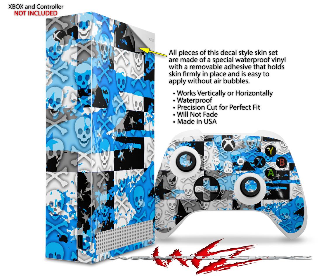 WraptorSkinz Skin Wrap compatible with the 2020 XBOX Series S Console and Controller Checker Skull Splatter Blue (XBOX NOT INCLUDED)