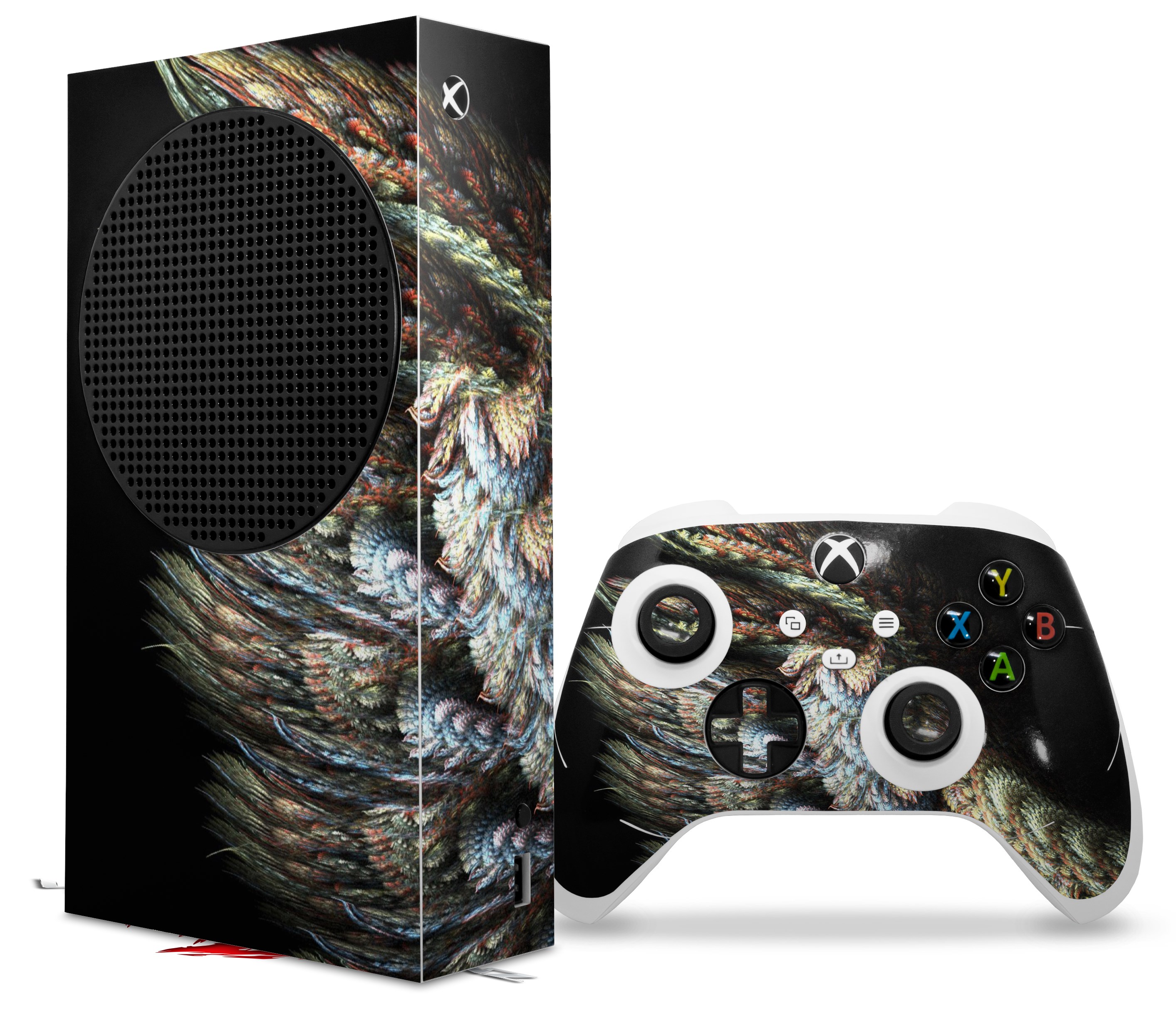 WraptorSkinz® skin wraps for the XBOX Series S gaming console and controller released November 2020 are printed using superb photo quality designs and vibrant colors printed with special fade resistant inks that last even in direct sun for years. WraptorSkinz are a composite of two layers of commercial grade materials. The bottom layer is a soft, flexible vinyl with a special removable adhesive that is easily positioned, applied without air bubbles. Next, we print the bottom layer with UV protected, fade resistant inks that deliver superb photo quality designs in vibrant colors. Last, we bond a professional grade laminate over the entire skin adding a glossy protective finish. This product is not affiliated with or endorsed by Microsoft or the XBOX brand.