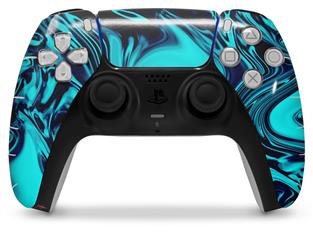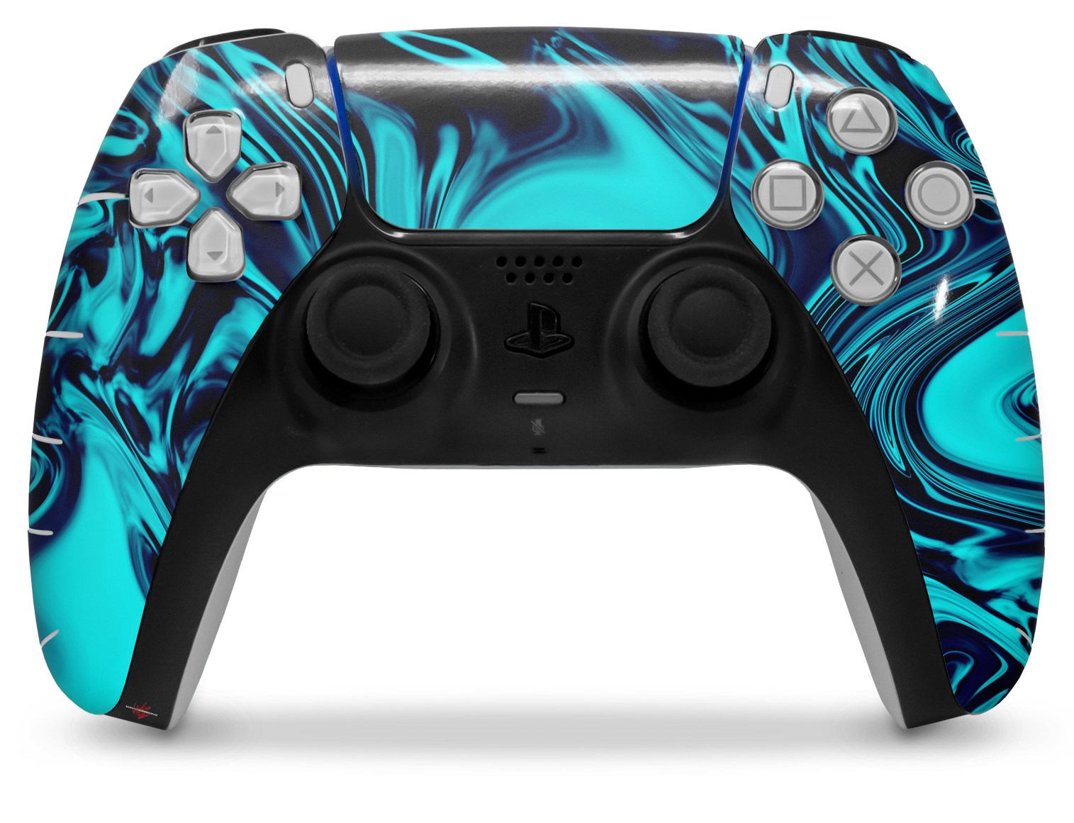 WraptorSkinz Skin Wrap compatible with the Sony PS5 DualSense Controller Liquid Metal Chrome Neon Blue (CONTROLLER NOT INCLUDED)