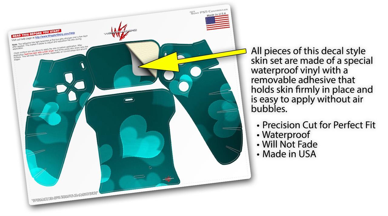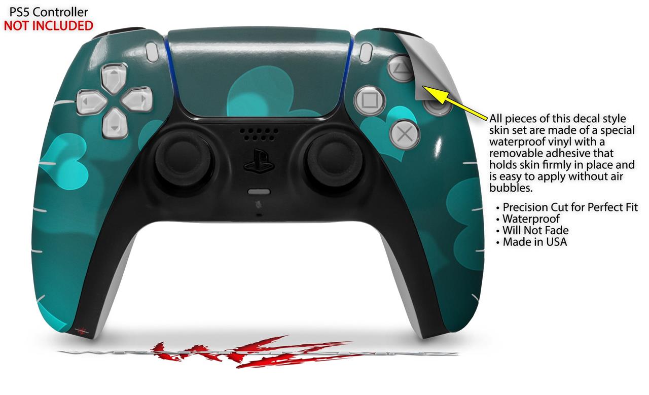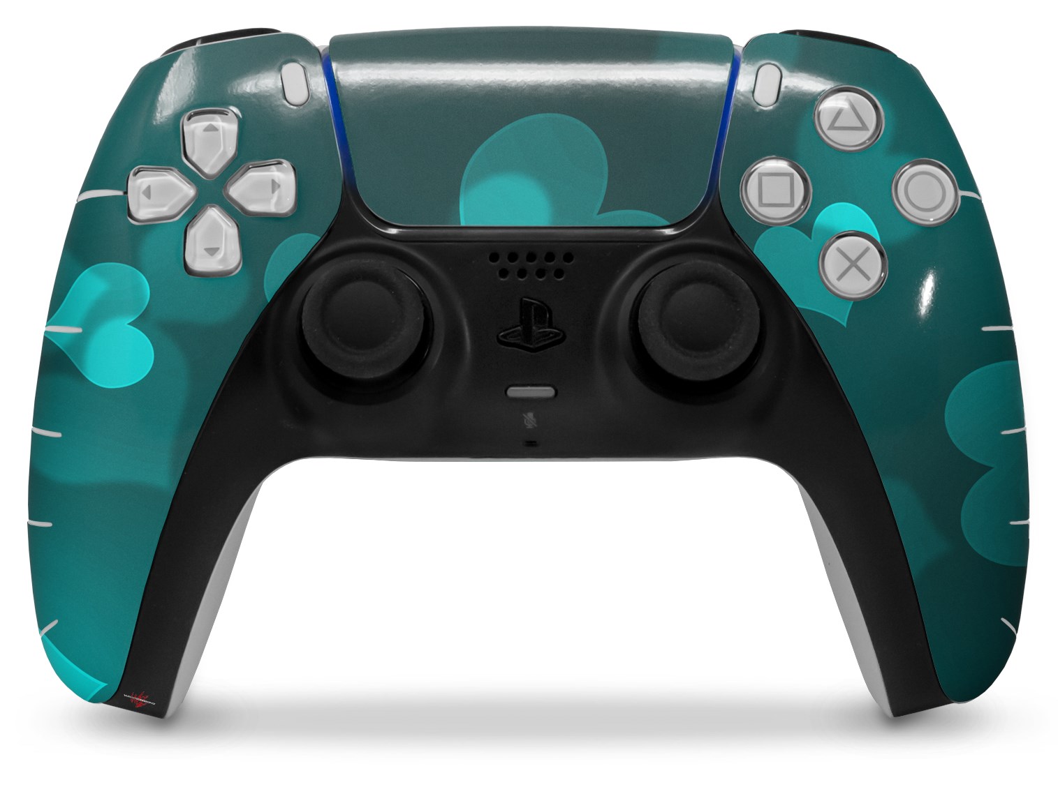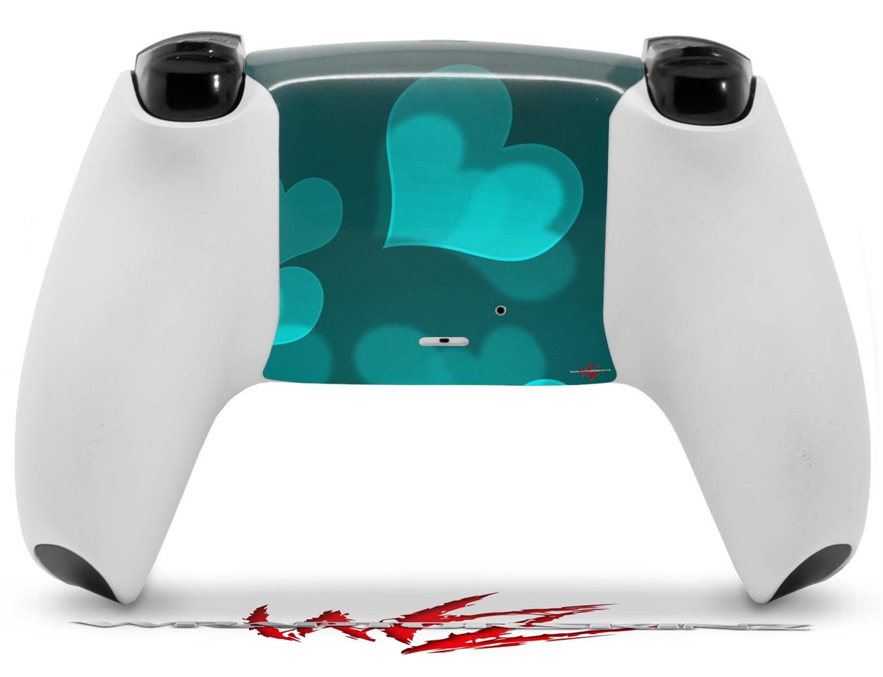 WraptorSkinz Skin Wrap compatible with the Sony PS5 DualSense Controller Bokeh Hearts Neon Teal (CONTROLLER NOT INCLUDED)
