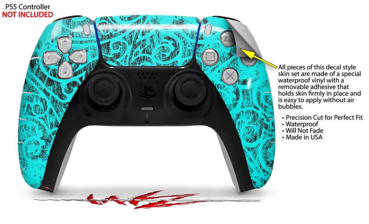 WraptorSkinz Skin Wrap compatible with the Sony PS5 DualSense Controller Folder Doodles Neon Teal (CONTROLLER NOT INCLUDED)