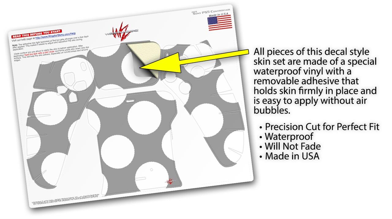 WraptorSkinz Skin Wrap compatible with the Sony PS5 DualSense Controller Kearas Polka Dots Whtie On Gray (CONTROLLER NOT INCLUDED)