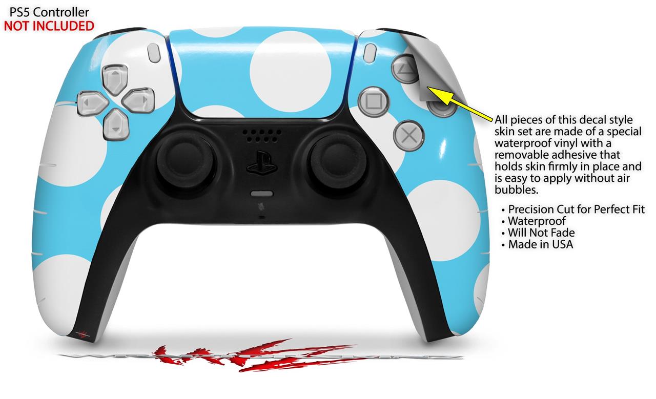 WraptorSkinz Skin Wrap compatible with the Sony PS5 DualSense Controller Kearas Polka Dots White And Blue (CONTROLLER NOT INCLUDED)