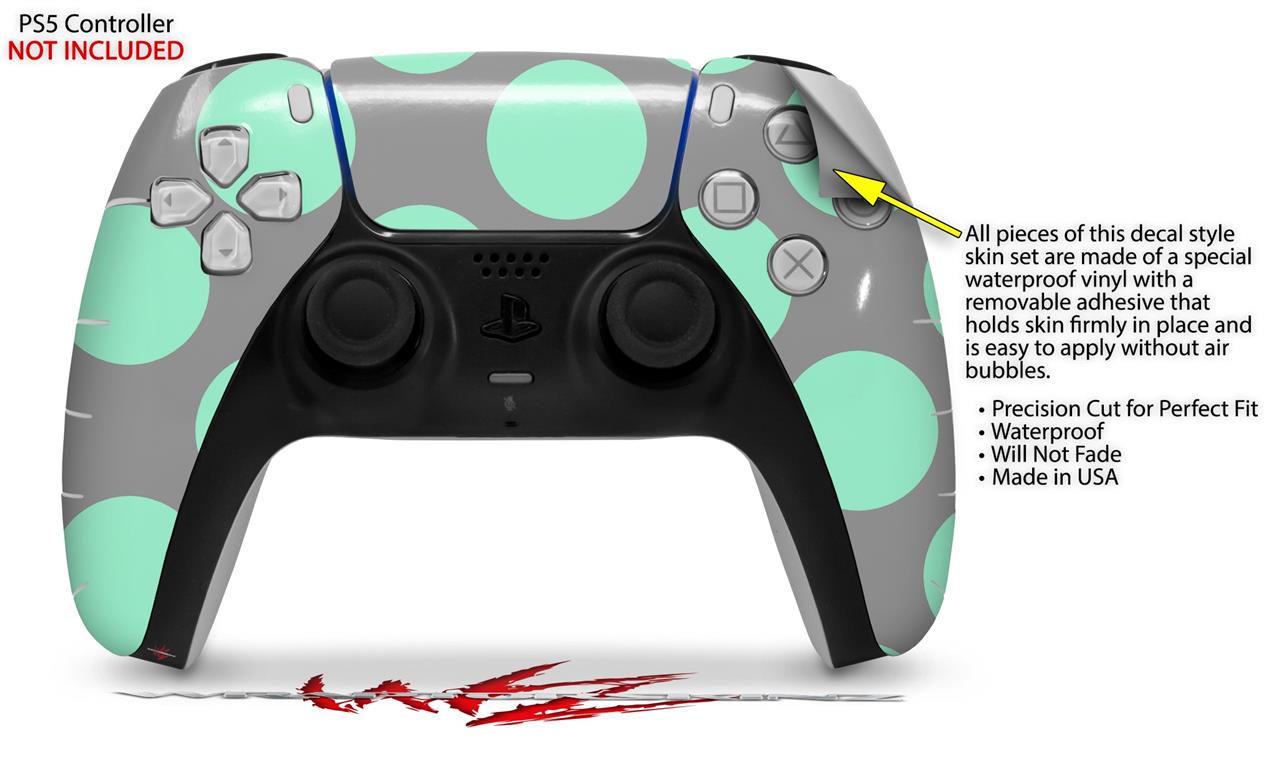 WraptorSkinz Skin Wrap compatible with the Sony PS5 DualSense Controller Kearas Polka Dots Mint And Gray (CONTROLLER NOT INCLUDED)