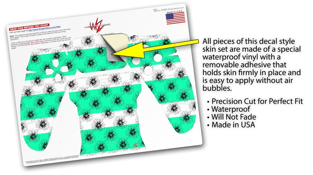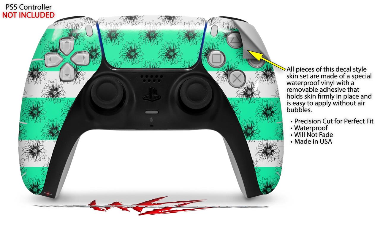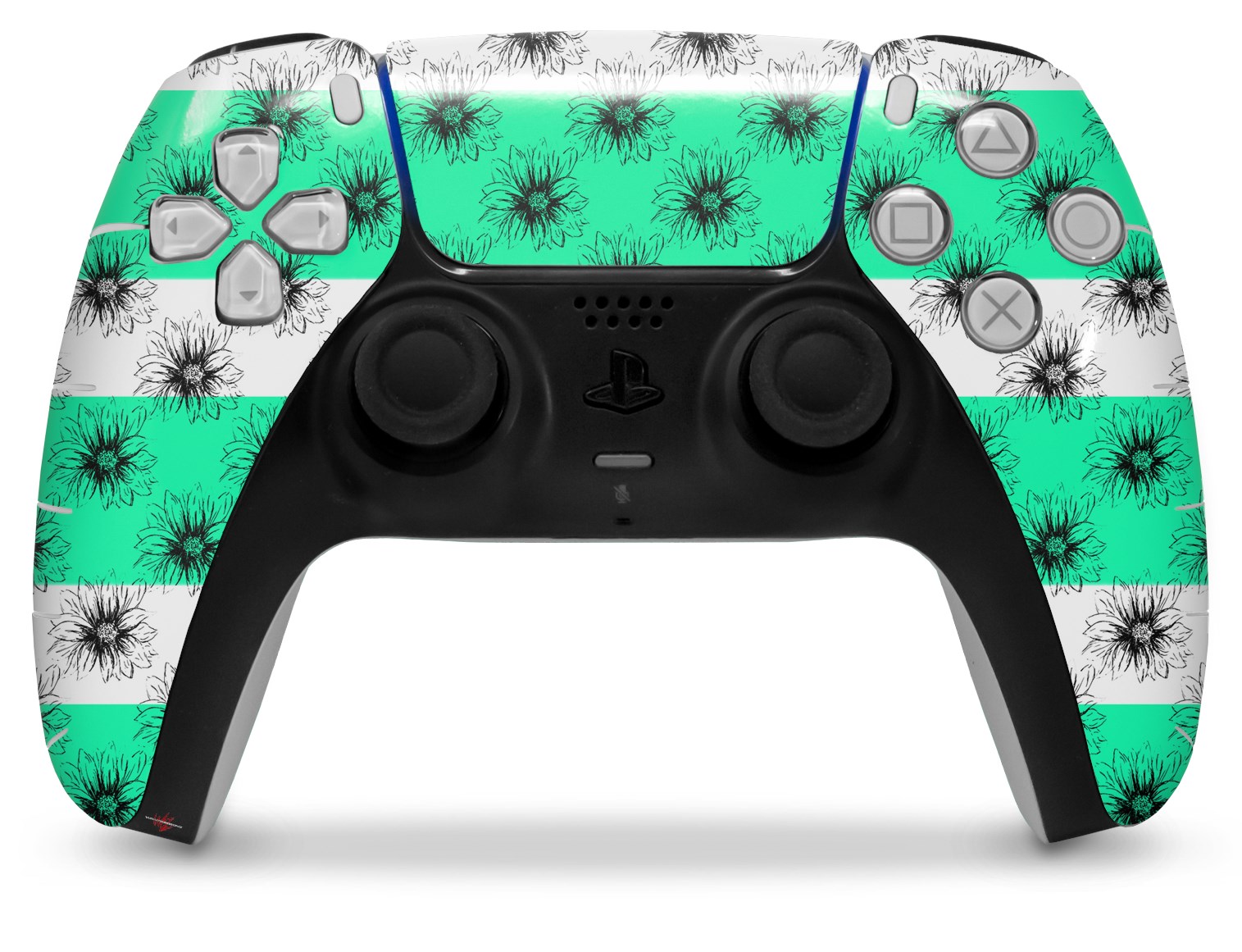 WraptorSkinz Skin Wrap compatible with the Sony PS5 DualSense Controller Kearas Daisies Stripe SeaFoam (CONTROLLER NOT INCLUDED)