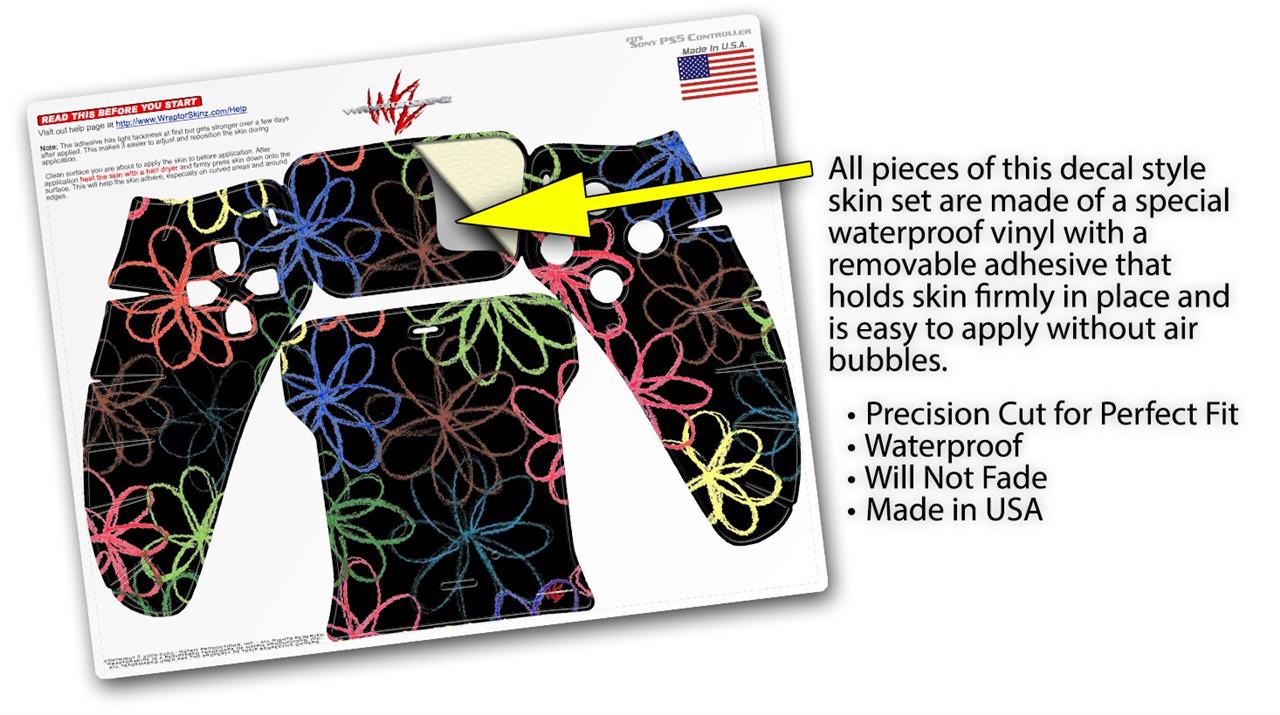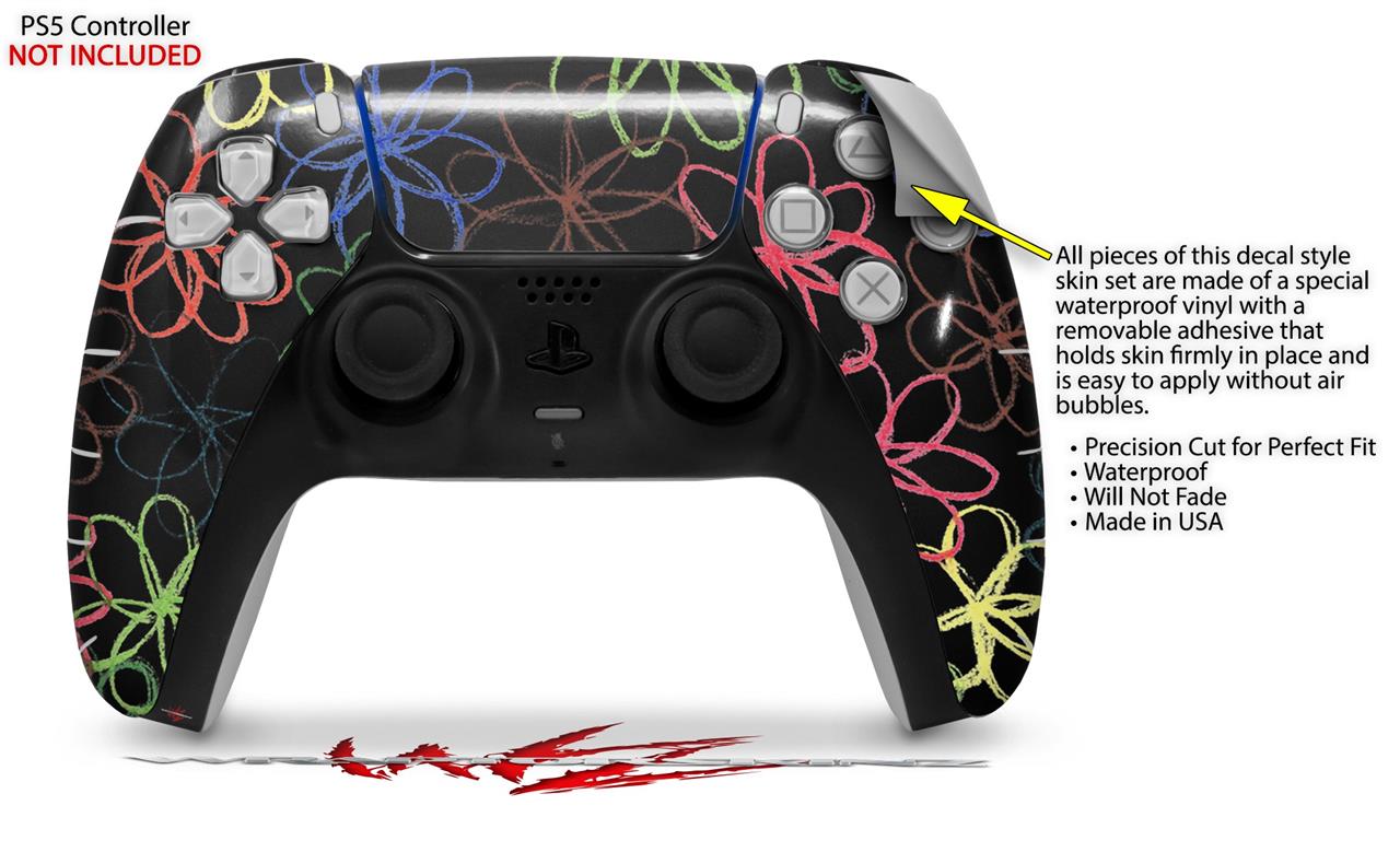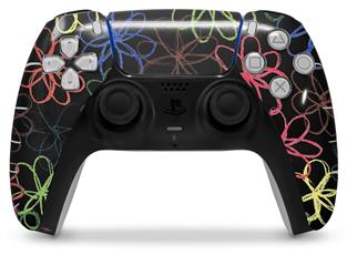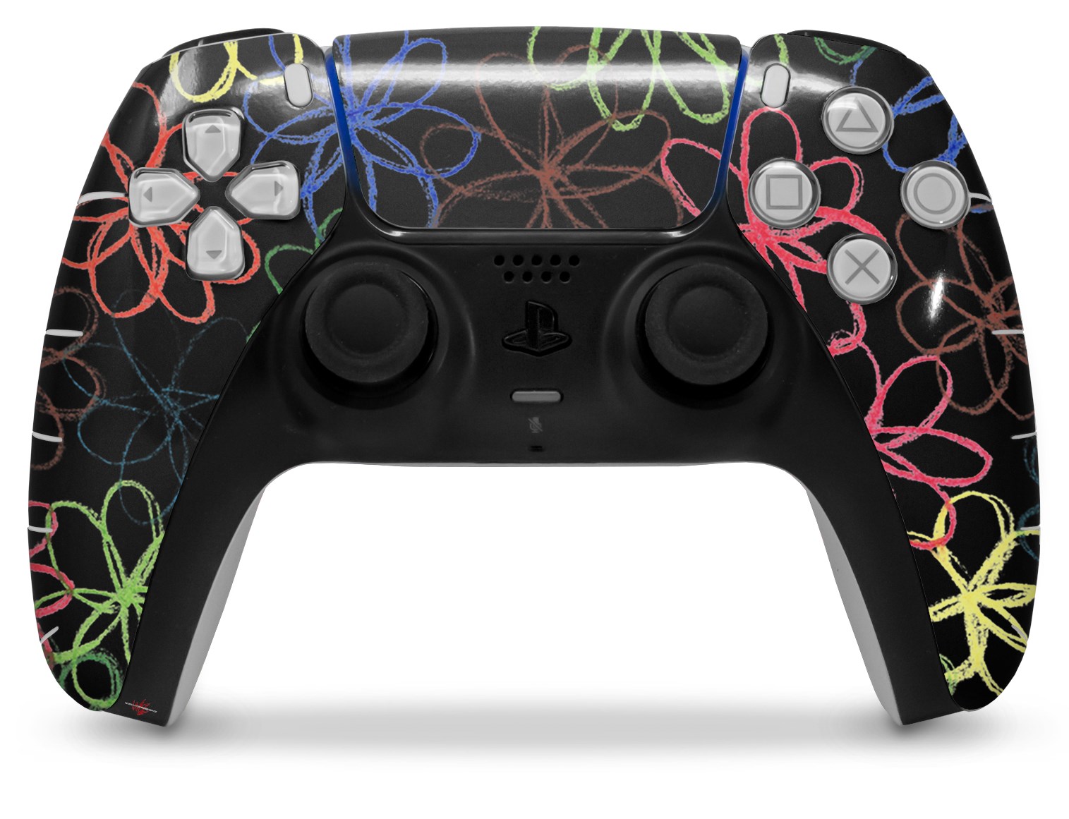 WraptorSkinz Skin Wrap compatible with the Sony PS5 DualSense Controller Kearas Flowers on Black (CONTROLLER NOT INCLUDED)