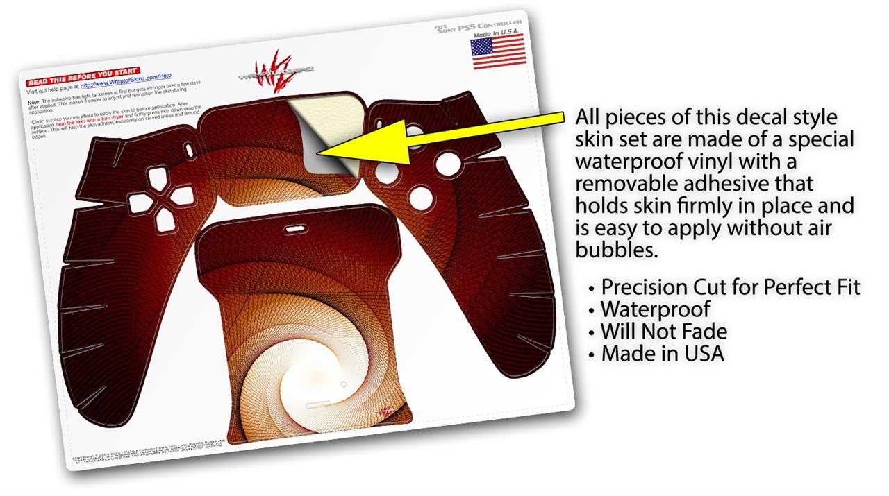 WraptorSkinz® skin wraps for the Sony Playstation 5 controller are printed using superb photo quality designs and vibrant colors printed with special fade resistant inks that last even in direct sun for years. WraptorSkinz are a composite of two layers of commercial grade materials. The bottom layer is a soft, flexible vinyl with a special removable adhesive that is easily positioned, applied without air bubbles. Next we print the bottom layer with UV protected, fade resistant inks that deliver superb photo quality designs in vibrant colors. Last, we bond a professional grade laminate over the entire skin adding a glossy protective finish. This product is not affiliated with or endorsed by Sony or the Playstation brand.
