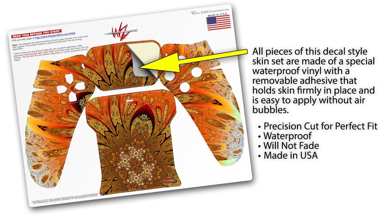 WraptorSkinz® skin wraps for the Sony Playstation 5 controller are printed using superb photo quality designs and vibrant colors printed with special fade resistant inks that last even in direct sun for years. WraptorSkinz are a composite of two layers of commercial grade materials. The bottom layer is a soft, flexible vinyl with a special removable adhesive that is easily positioned, applied without air bubbles. Next we print the bottom layer with UV protected, fade resistant inks that deliver superb photo quality designs in vibrant colors. Last, we bond a professional grade laminate over the entire skin adding a glossy protective finish. This product is not affiliated with or endorsed by Sony or the Playstation brand.