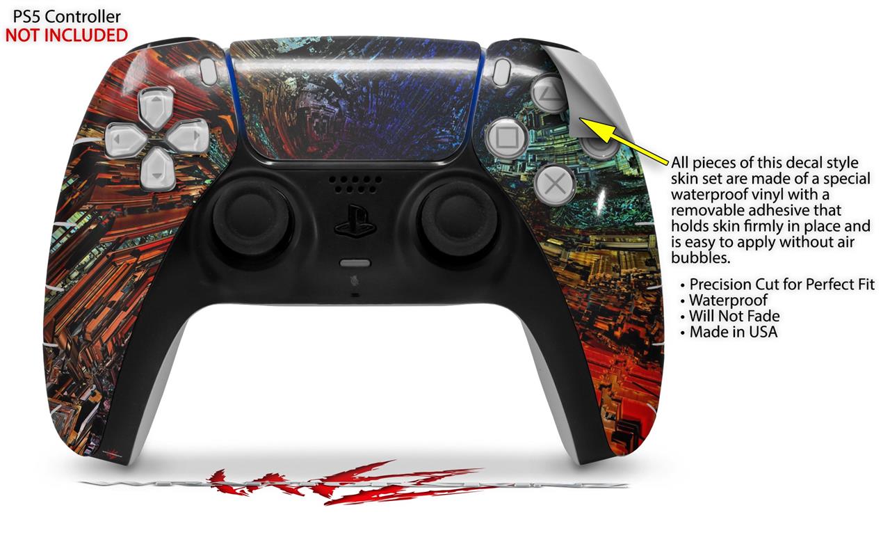 WraptorSkinz® skin wraps for the Sony Playstation 5 controller are printed using superb photo quality designs and vibrant colors printed with special fade resistant inks that last even in direct sun for years. WraptorSkinz are a composite of two layers of commercial grade materials. The bottom layer is a soft, flexible vinyl with a special removable adhesive that is easily positioned, applied without air bubbles. Next we print the bottom layer with UV protected, fade resistant inks that deliver superb photo quality designs in vibrant colors. Last, we bond a professional grade laminate over the entire skin adding a glossy protective finish. This product is not affiliated with or endorsed by Sony or the Playstation brand.
