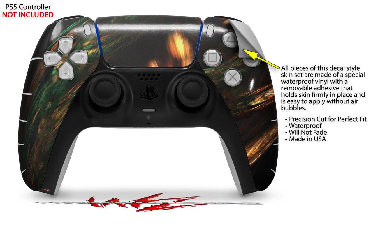 WraptorSkinz® skin wraps for the Sony Playstation 5 controller are printed using superb photo quality designs and vibrant colors printed with special fade resistant inks that last even in direct sun for years. WraptorSkinz are a composite of two layers of commercial grade materials. The bottom layer is a soft, flexible vinyl with a special removable adhesive that is easily positioned, applied without air bubbles. Next we print the bottom layer with UV protected, fade resistant inks that deliver superb photo quality designs in vibrant colors. Last, we bond a professional grade laminate over the entire skin adding a glossy protective finish. This product is not affiliated with or endorsed by Sony or the Playstation brand.