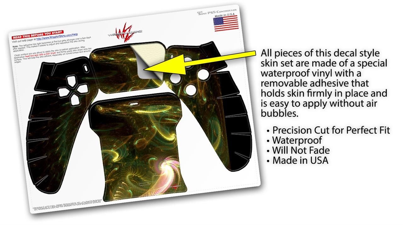 WraptorSkinz® skin wraps for the Sony Playstation 5 controller are printed using superb photo quality designs and vibrant colors printed with special fade resistant inks that last even in direct sun for years. WraptorSkinz are a composite of two layers of commercial grade materials. The bottom layer is a soft, flexible vinyl with a special removable adhesive that is easily positioned, applied without air bubbles. Next we print the bottom layer with UV protected, fade resistant inks that deliver superb photo quality designs in vibrant colors. Last, we bond a professional grade laminate over the entire skin adding a glossy protective finish. This product is not affiliated with or endorsed by Sony or the Playstation brand.