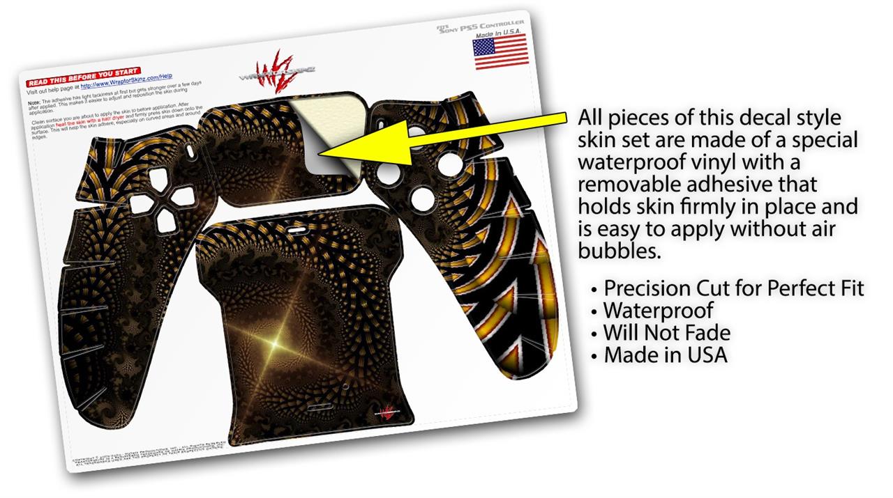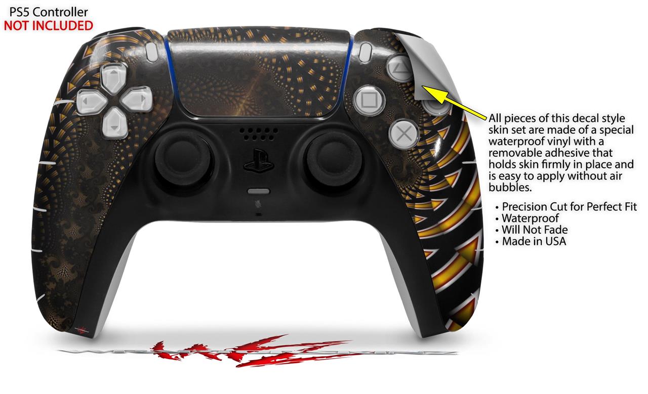 WraptorSkinz® skin wraps for the Sony Playstation 5 controller are printed using superb photo quality designs and vibrant colors printed with special fade resistant inks that last even in direct sun for years. WraptorSkinz are a composite of two layers of commercial grade materials. The bottom layer is a soft, flexible vinyl with a special removable adhesive that is easily positioned, applied without air bubbles. Next we print the bottom layer with UV protected, fade resistant inks that deliver superb photo quality designs in vibrant colors. Last, we bond a professional grade laminate over the entire skin adding a glossy protective finish. This product is not affiliated with or endorsed by Sony or the Playstation brand.