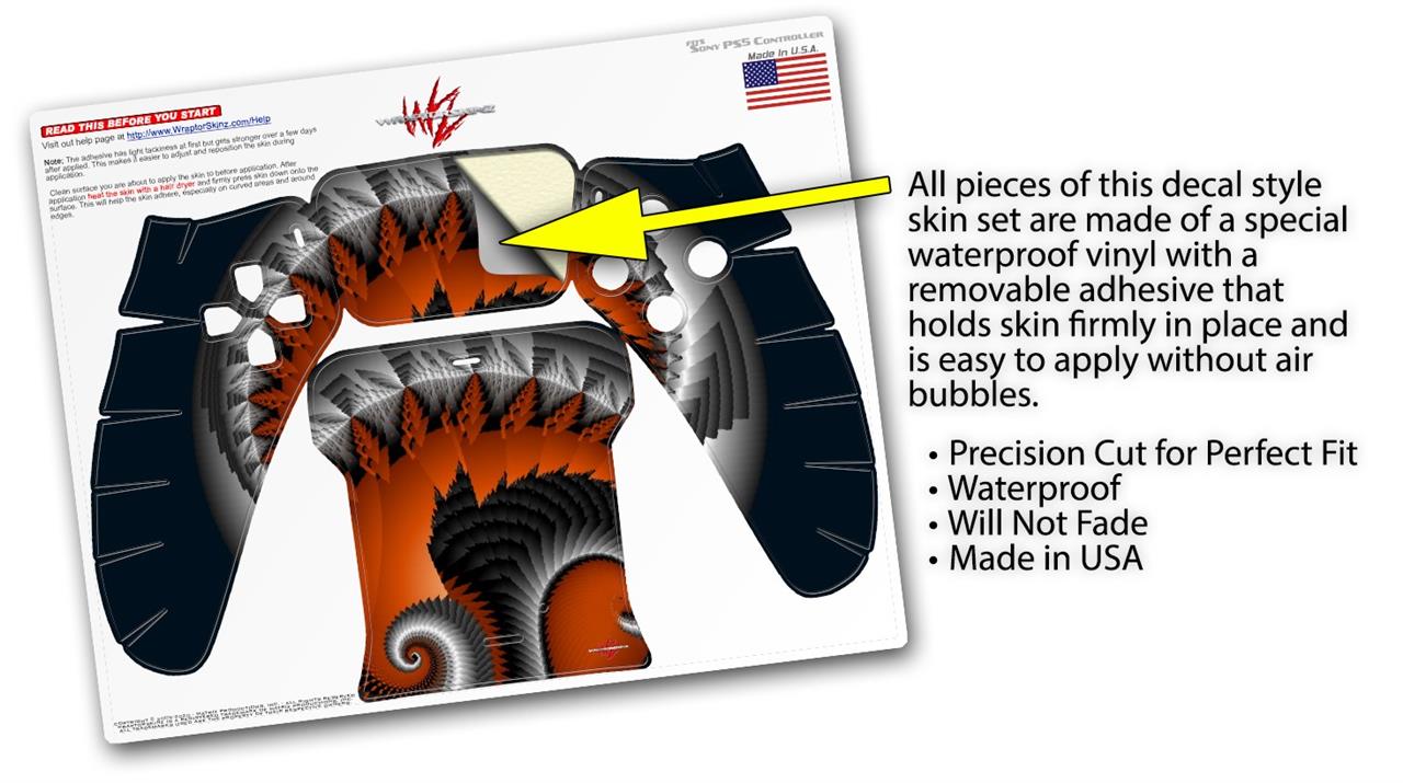 WraptorSkinz® skin wraps for the Sony Playstation 5 controller are printed using superb photo quality designs and vibrant colors printed with special fade resistant inks that last even in direct sun for years. WraptorSkinz are a composite of two layers of commercial grade materials. The bottom layer is a soft, flexible vinyl with a special removable adhesive that is easily positioned, applied without air bubbles. Next we print the bottom layer with UV protected, fade resistant inks that deliver superb photo quality designs in vibrant colors. Last, we bond a professional grade laminate over the entire skin adding a glossy protective finish. This product is not affiliated with or endorsed by Sony or the Playstation brand.