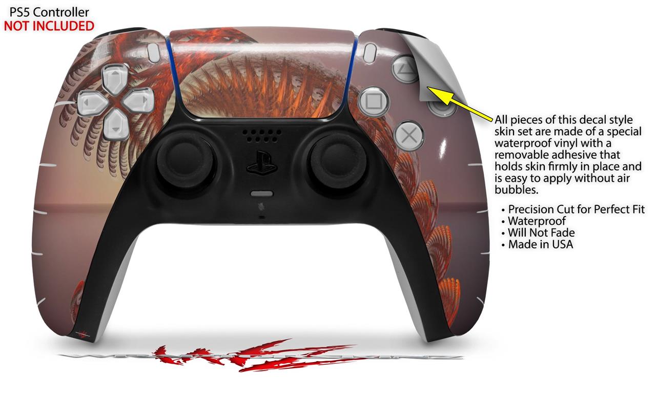 WraptorSkinz® skin wraps for the Sony Playstation 5 controller are printed using superb photo quality designs and vibrant colors printed with special fade resistant inks that last even in direct sun for years. WraptorSkinz are a composite of two layers of commercial grade materials. The bottom layer is a soft, flexible vinyl with a special removable adhesive that is easily positioned, applied without air bubbles. Next we print the bottom layer with UV protected, fade resistant inks that deliver superb photo quality designs in vibrant colors. Last, we bond a professional grade laminate over the entire skin adding a glossy protective finish. This product is not affiliated with or endorsed by Sony or the Playstation brand.