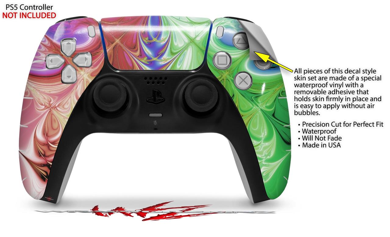 WraptorSkinz® skin wraps for the Sony Playstation 5 controller are printed using superb photo quality designs and vibrant colors printed with special fade resistant inks that last even in direct sun for years. WraptorSkinz are a composite of two layers of commercial grade materials. The bottom layer is a soft, flexible vinyl with a special removable adhesive that is easily positioned, applied without air bubbles. Next we print the bottom layer with UV protected, fade resistant inks that deliver superb photo quality designs in vibrant colors. Last, we bond a professional grade laminate over the entire skin adding a glossy protective finish. This product is not affiliated with or endorsed by Sony or the Playstation brand.