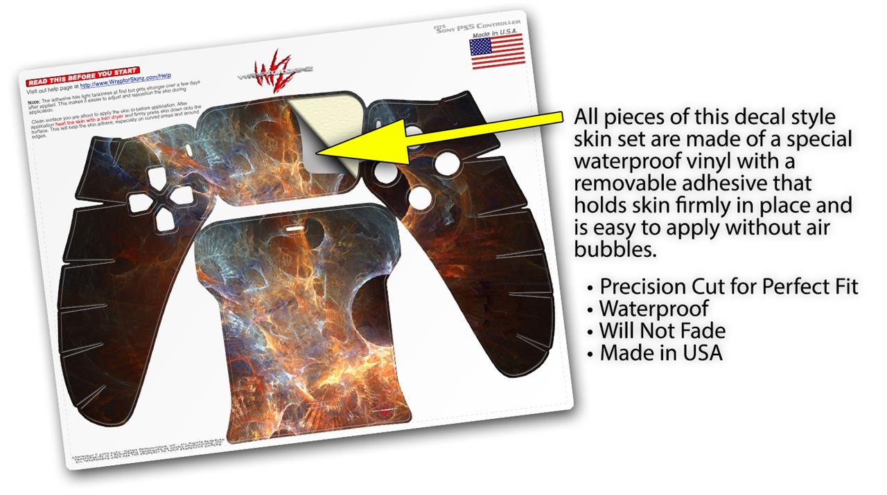 WraptorSkinz® skin wraps for the Sony Playstation 5 controller are printed using superb photo quality designs and vibrant colors printed with special fade resistant inks that last even in direct sun for years. WraptorSkinz are a composite of two layers of commercial grade materials. The bottom layer is a soft, flexible vinyl with a special removable adhesive that is easily positioned, applied without air bubbles. Next we print the bottom layer with UV protected, fade resistant inks that deliver superb photo quality designs in vibrant colors. Last, we bond a professional grade laminate over the entire skin adding a glossy protective finish. This product is not affiliated with or endorsed by Sony or the Playstation brand.