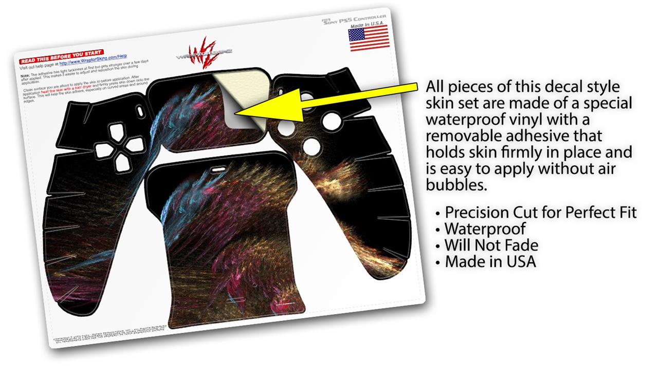 WraptorSkinz® skin wraps for the Sony Playstation 5 controller are printed using superb photo quality designs and vibrant colors printed with special fade resistant inks that last even in direct sun for years. WraptorSkinz are a composite of two layers of commercial grade materials. The bottom layer is a soft, flexible vinyl with a special removable adhesive that is easily positioned, applied without air bubbles. Next we print the bottom layer with UV protected, fade resistant inks that deliver superb photo quality designs in vibrant colors. Last, we bond a professional grade laminate over the entire skin adding a glossy protective finish. This product is not affiliated with or endorsed by Sony or the Playstation brand.