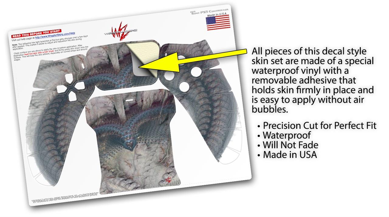 WraptorSkinz® skin wraps for the Sony Playstation 5 controller are printed using superb photo quality designs and vibrant colors printed with special fade resistant inks that last even in direct sun for years. WraptorSkinz are a composite of two layers of commercial grade materials. The bottom layer is a soft, flexible vinyl with a special removable adhesive that is easily positioned, applied without air bubbles. Next we print the bottom layer with UV protected, fade resistant inks that deliver superb photo quality designs in vibrant colors. Last, we bond a professional grade laminate over the entire skin adding a glossy protective finish. This product is not affiliated with or endorsed by Sony or the Playstation brand.