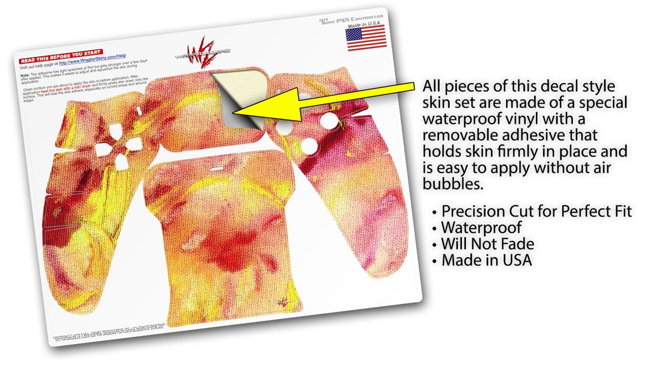 WraptorSkinz® skin wraps for the Sony Playstation 5 controller are printed using superb photo quality designs and vibrant colors printed with special fade resistant inks that last even in direct sun for years. WraptorSkinz are a composite of two layers of commercial grade materials. The bottom layer is a soft, flexible vinyl with a special removable adhesive that is easily positioned, applied without air bubbles. Next we print the bottom layer with UV protected, fade resistant inks that deliver superb photo quality designs in vibrant colors. Last, we bond a professional grade laminate over the entire skin adding a glossy protective finish. This product is not affiliated with or endorsed by Sony or the Playstation brand.