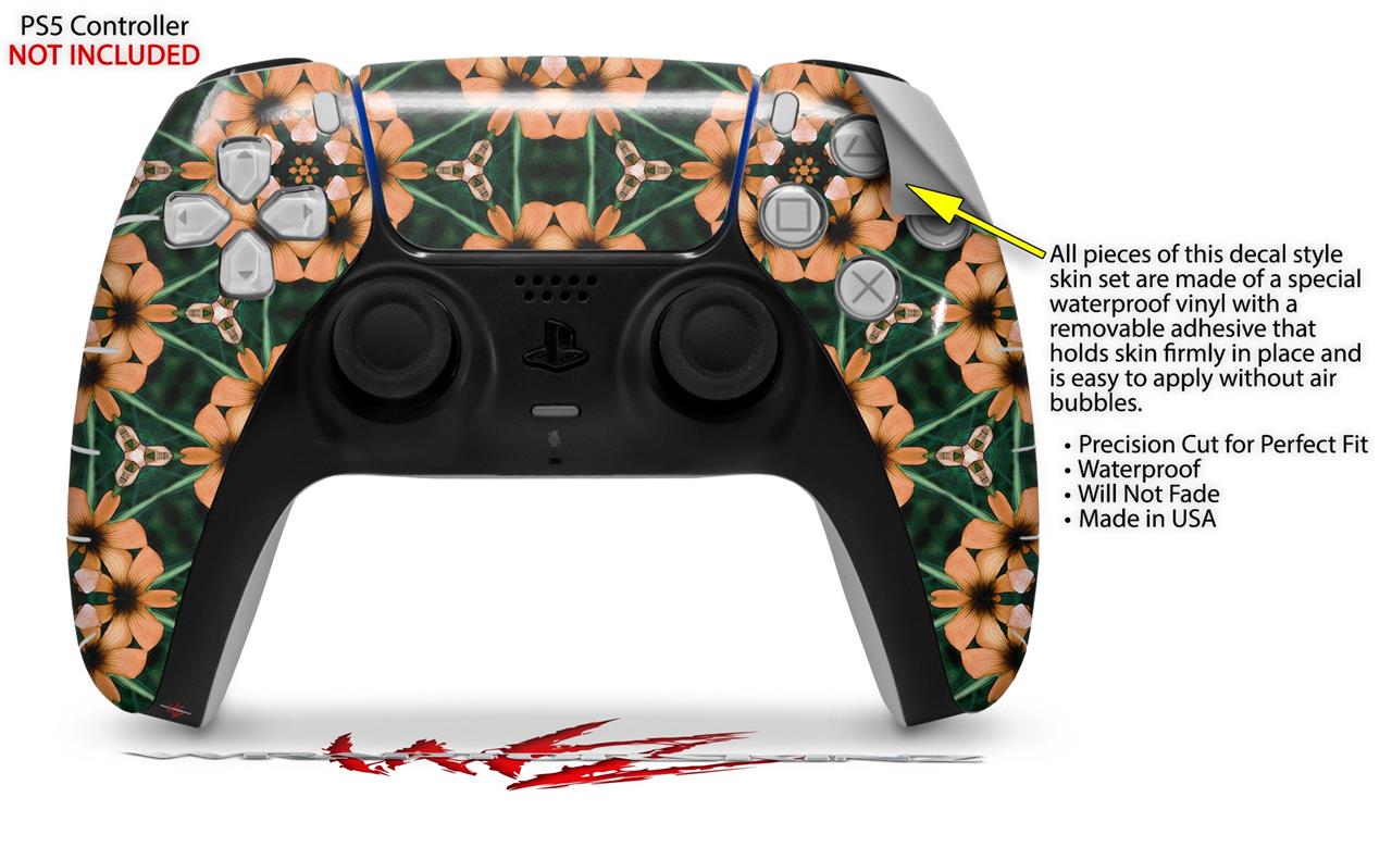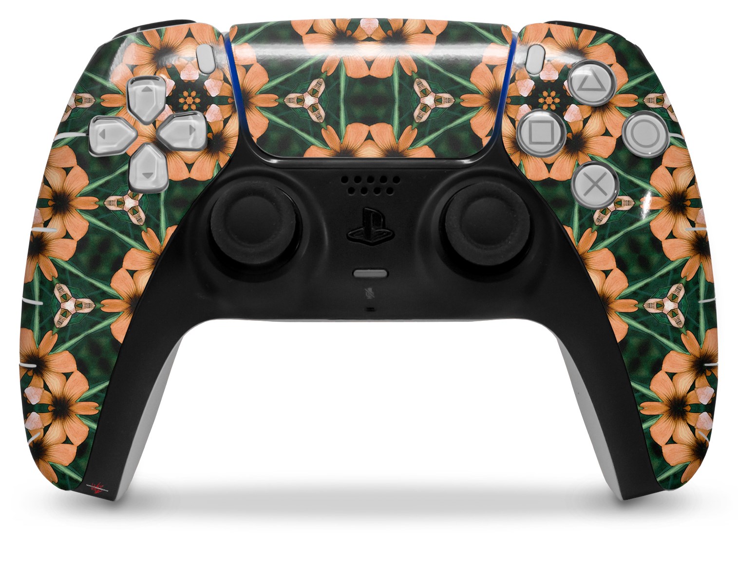 WraptorSkinz Skin Wrap compatible with the Sony PS5 DualSense Controller Floral Pattern Orange (CONTROLLER NOT INCLUDED)