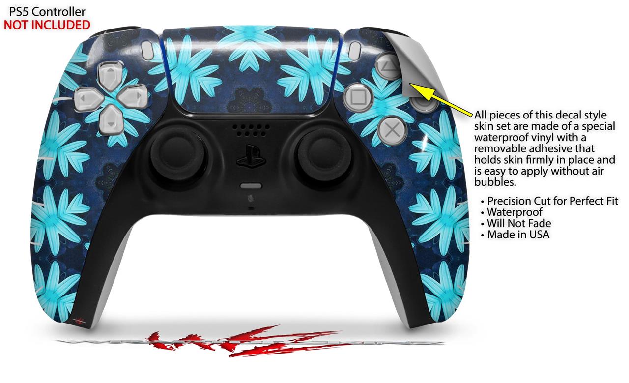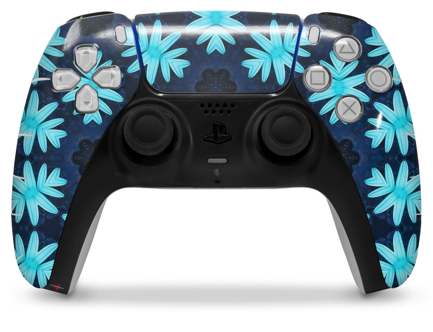 WraptorSkinz Skin Wrap compatible with the Sony PS5 DualSense Controller Abstract Floral Blue (CONTROLLER NOT INCLUDED)
