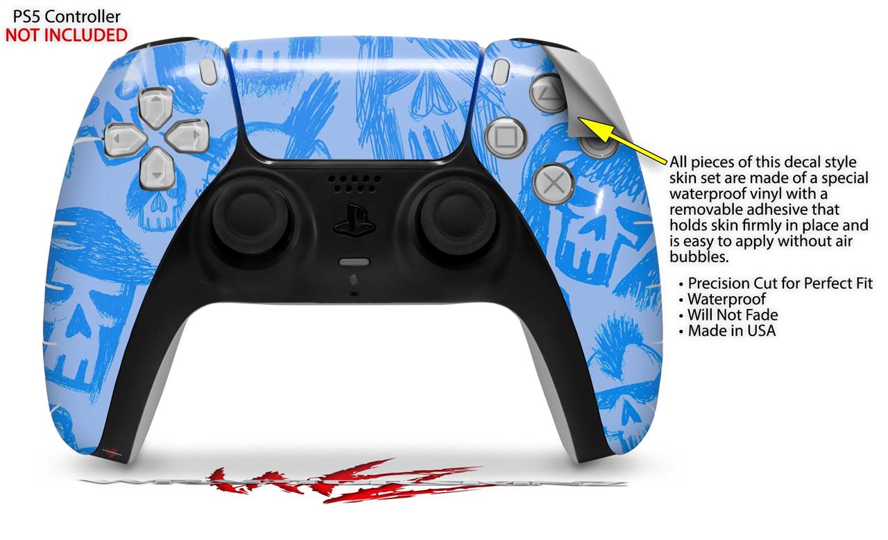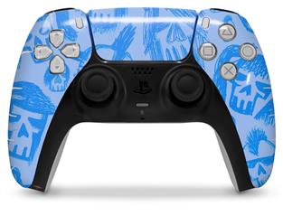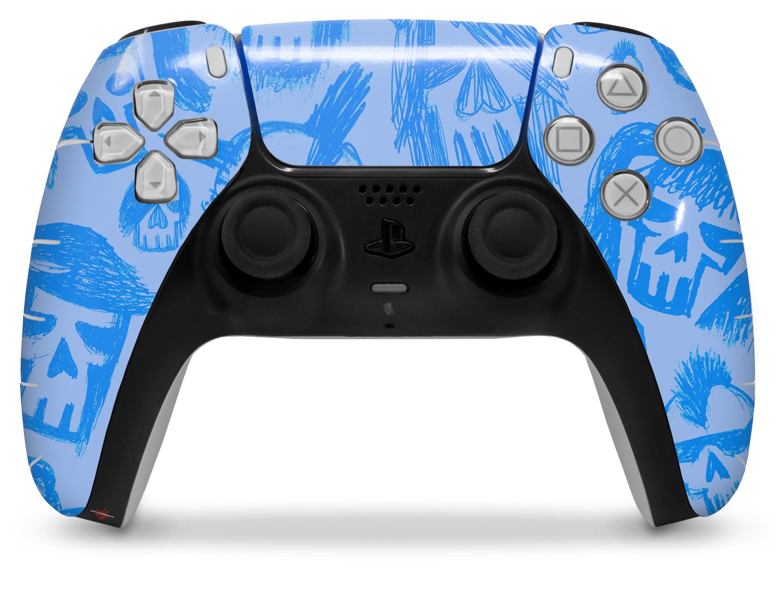 WraptorSkinz Skin Wrap compatible with the Sony PS5 DualSense Controller Skull Sketches Blue (CONTROLLER NOT INCLUDED)