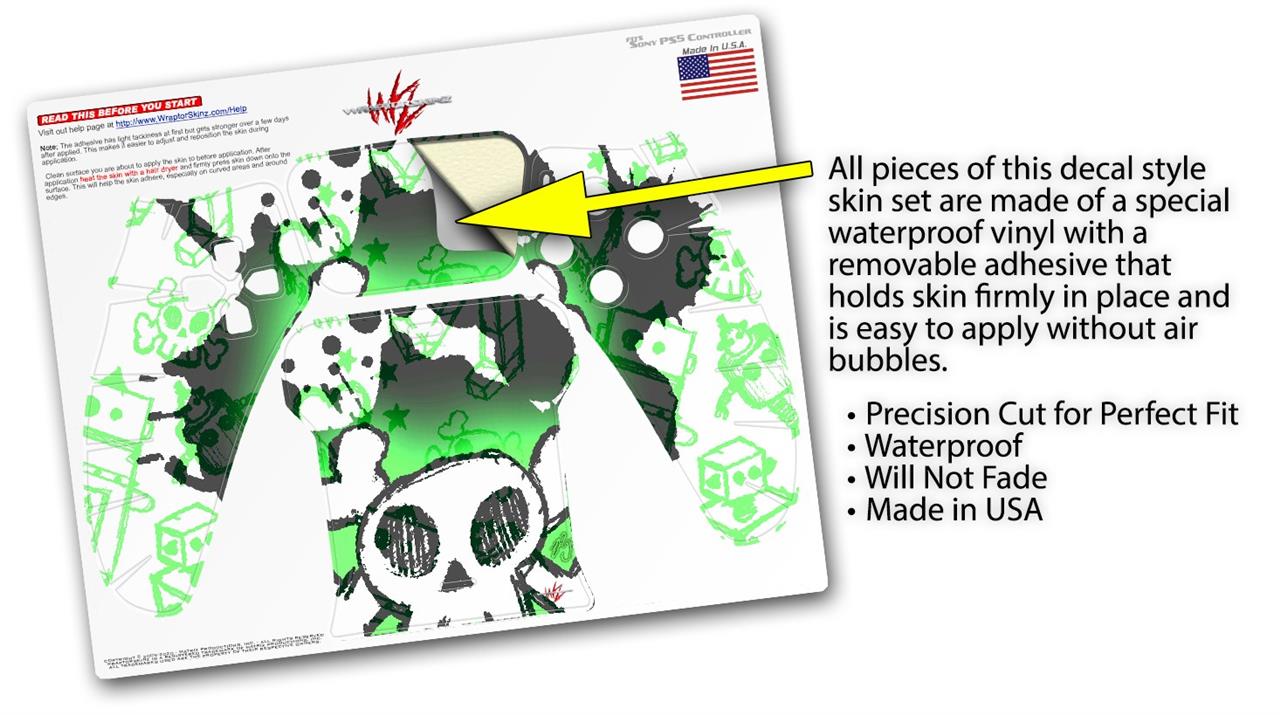 WraptorSkinz Skin Wrap compatible with the Sony PS5 DualSense Controller Cartoon Skull Green (CONTROLLER NOT INCLUDED)